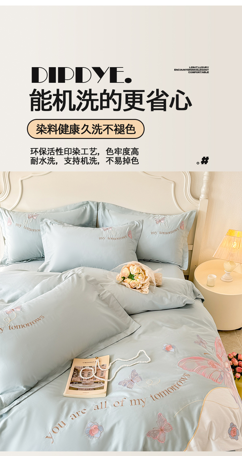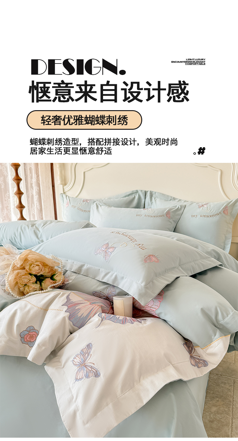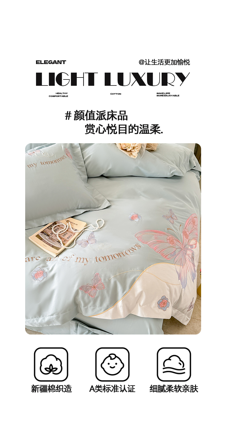 典曼家纺 2025新款A类刺绣四件套-梦幻蝶影 梦幻蝶影-蓝