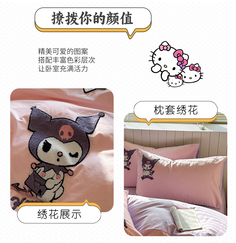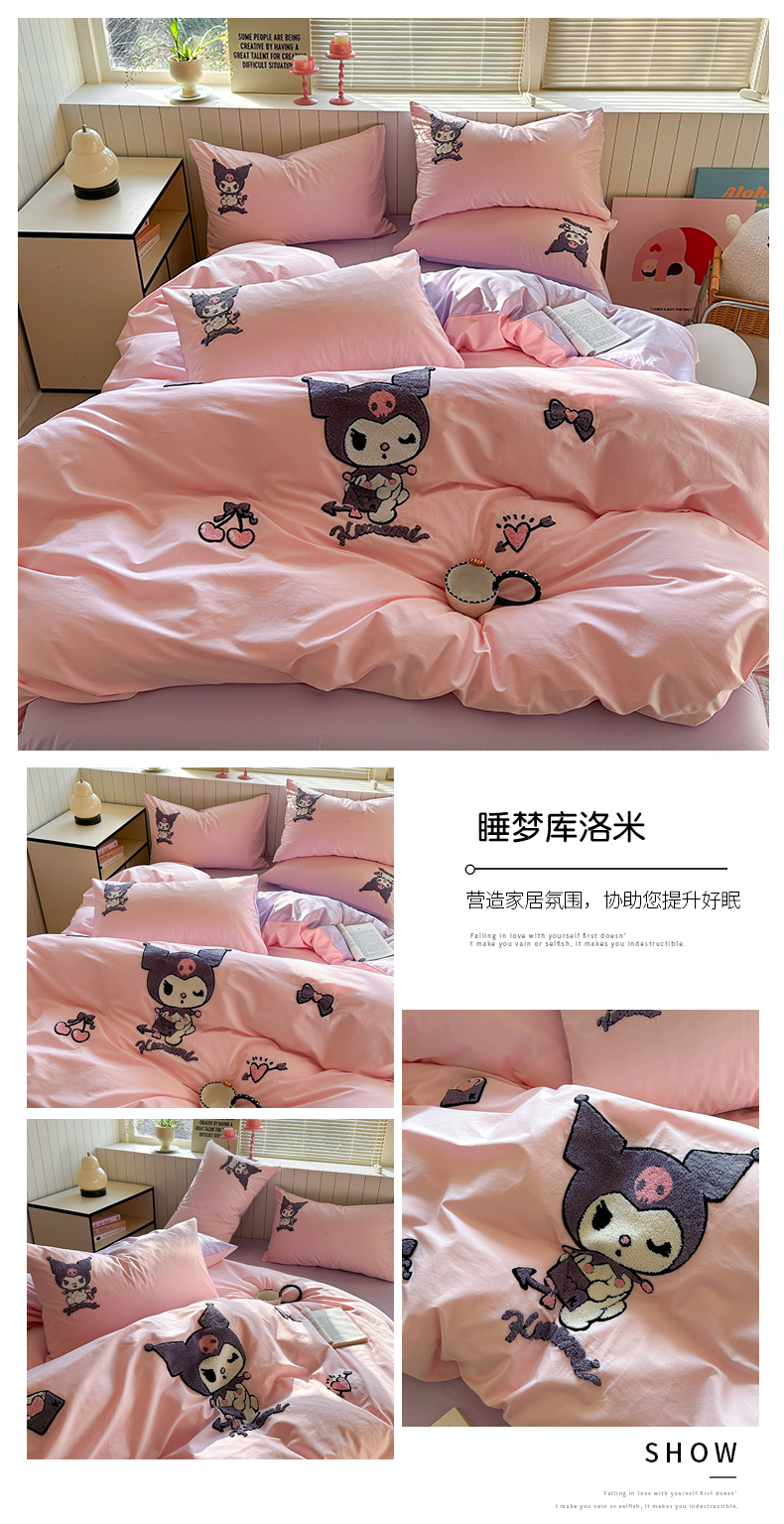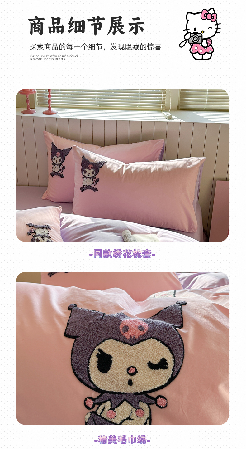 (总)金爱家 2025新款A类三丽鸥正版授权云柔水洗棉兔毛贴布绣刺绣软糯系列四件套,云柔水洗棉-贴布绣粉格KT,云柔水洗棉-贴布绣蓝格布丁狗,云柔水洗棉-贴布绣蓝格KT,云柔水洗棉-贴布绣美乐蒂,云柔水洗棉-贴布绣萌萌布丁狗,云柔水洗棉-贴布绣你好大耳狗,云柔水洗棉-贴布绣紫格库洛米