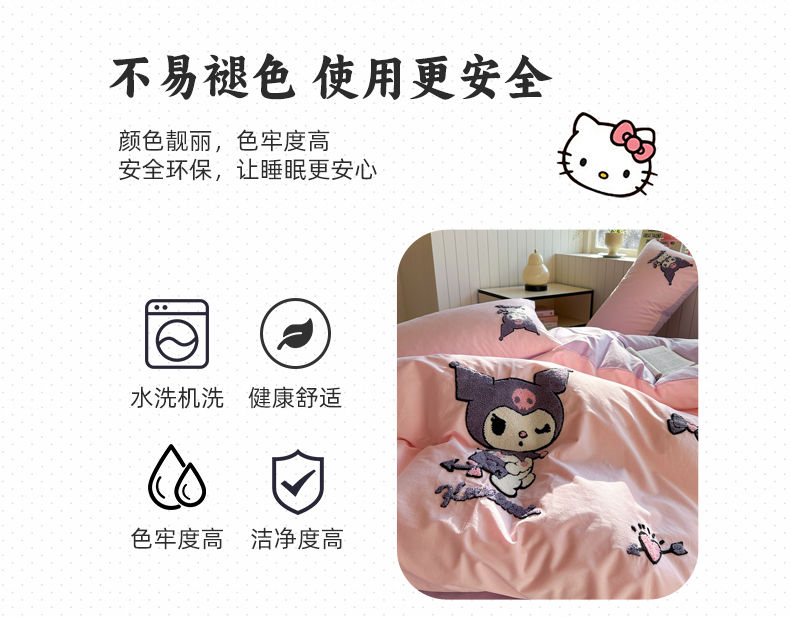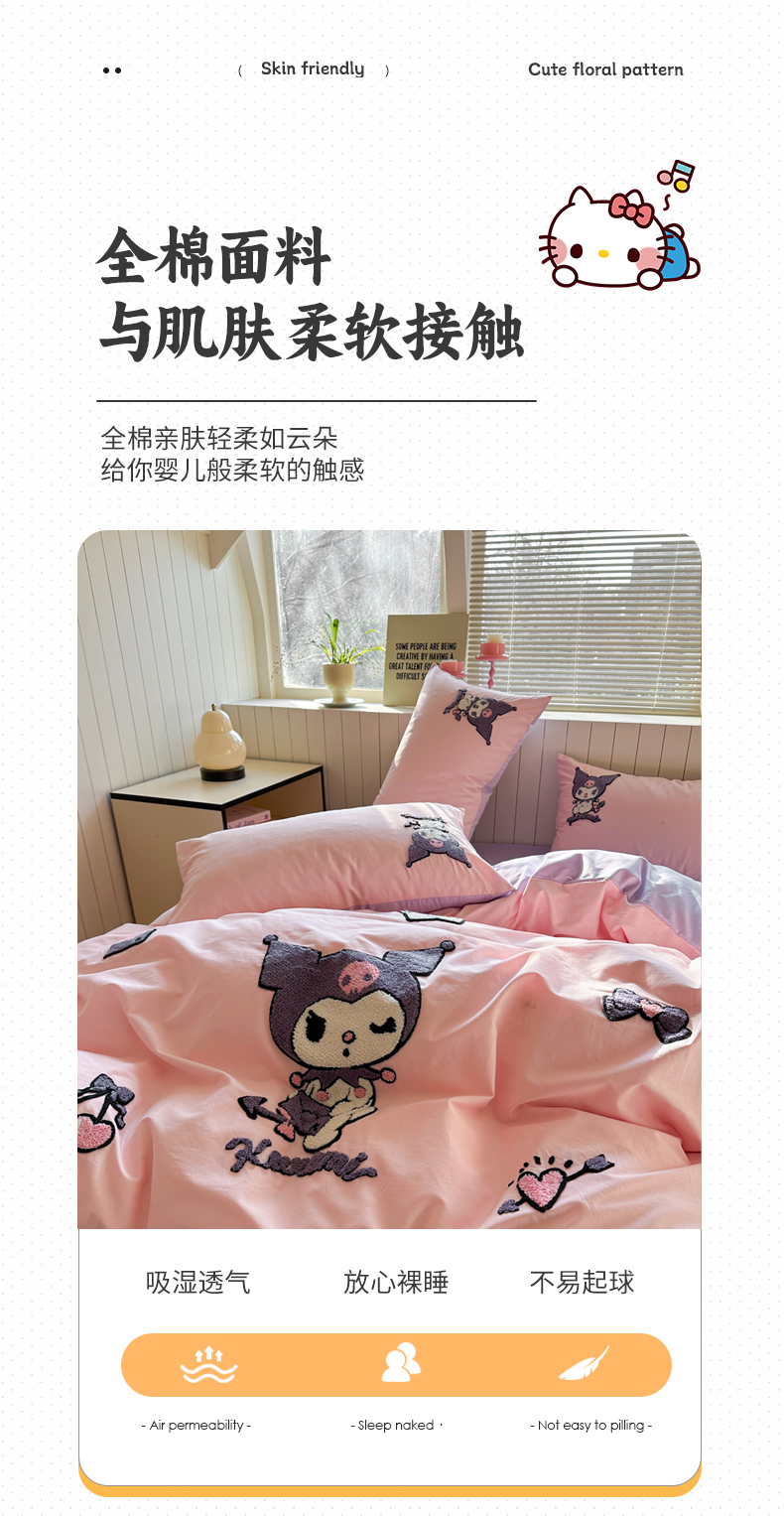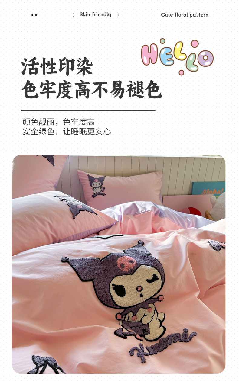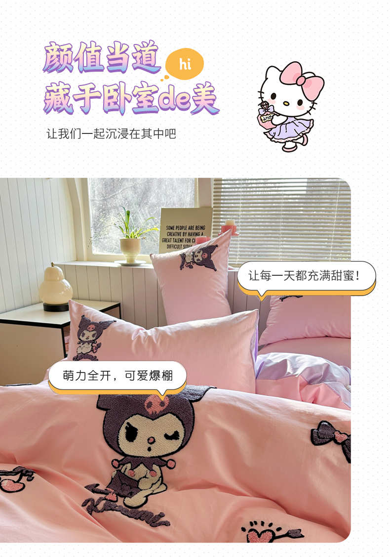 (总)金爱家 2025新款A类三丽鸥正版授权云柔水洗棉兔毛贴布绣刺绣软糯系列四件套,云柔水洗棉-贴布绣粉格KT,云柔水洗棉-贴布绣蓝格布丁狗,云柔水洗棉-贴布绣蓝格KT,云柔水洗棉-贴布绣美乐蒂,云柔水洗棉-贴布绣萌萌布丁狗,云柔水洗棉-贴布绣你好大耳狗,云柔水洗棉-贴布绣紫格库洛米