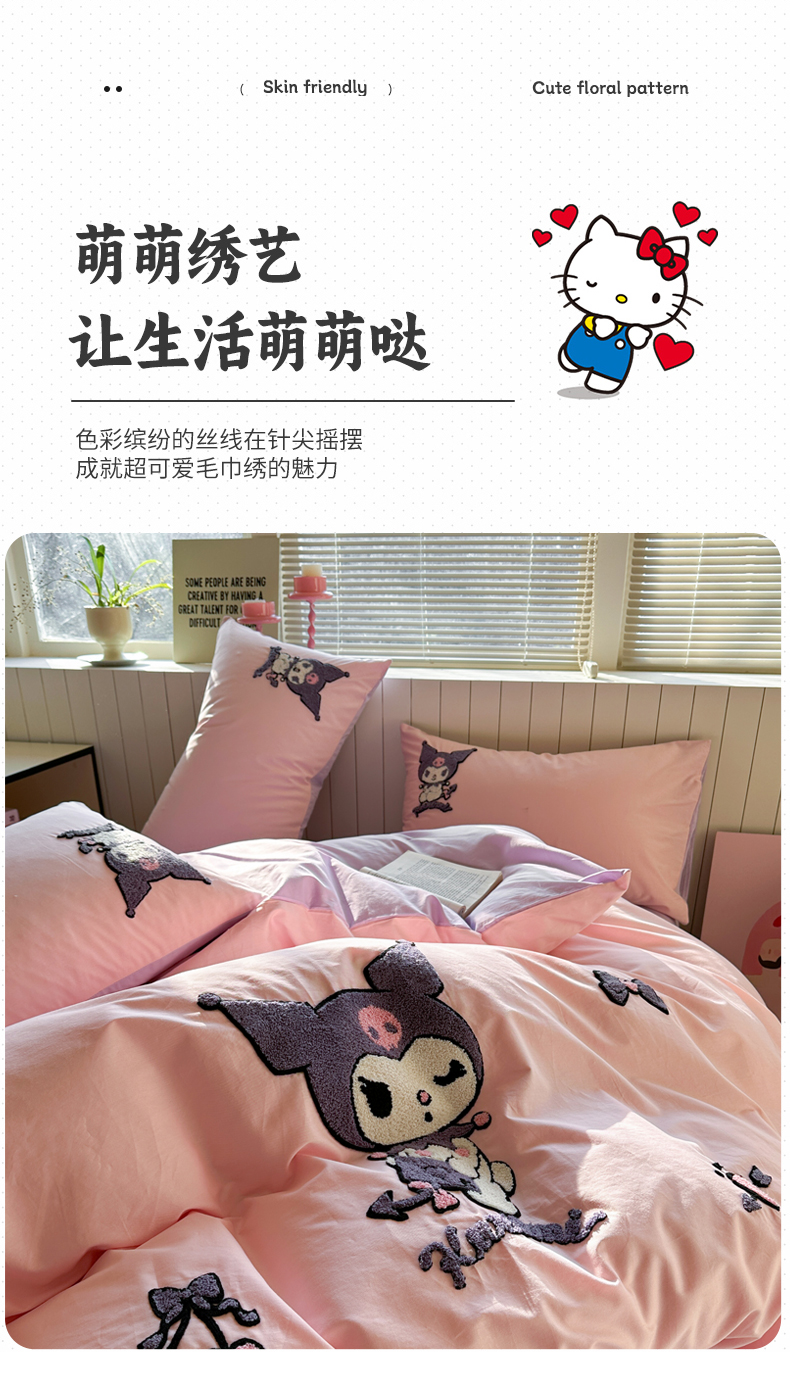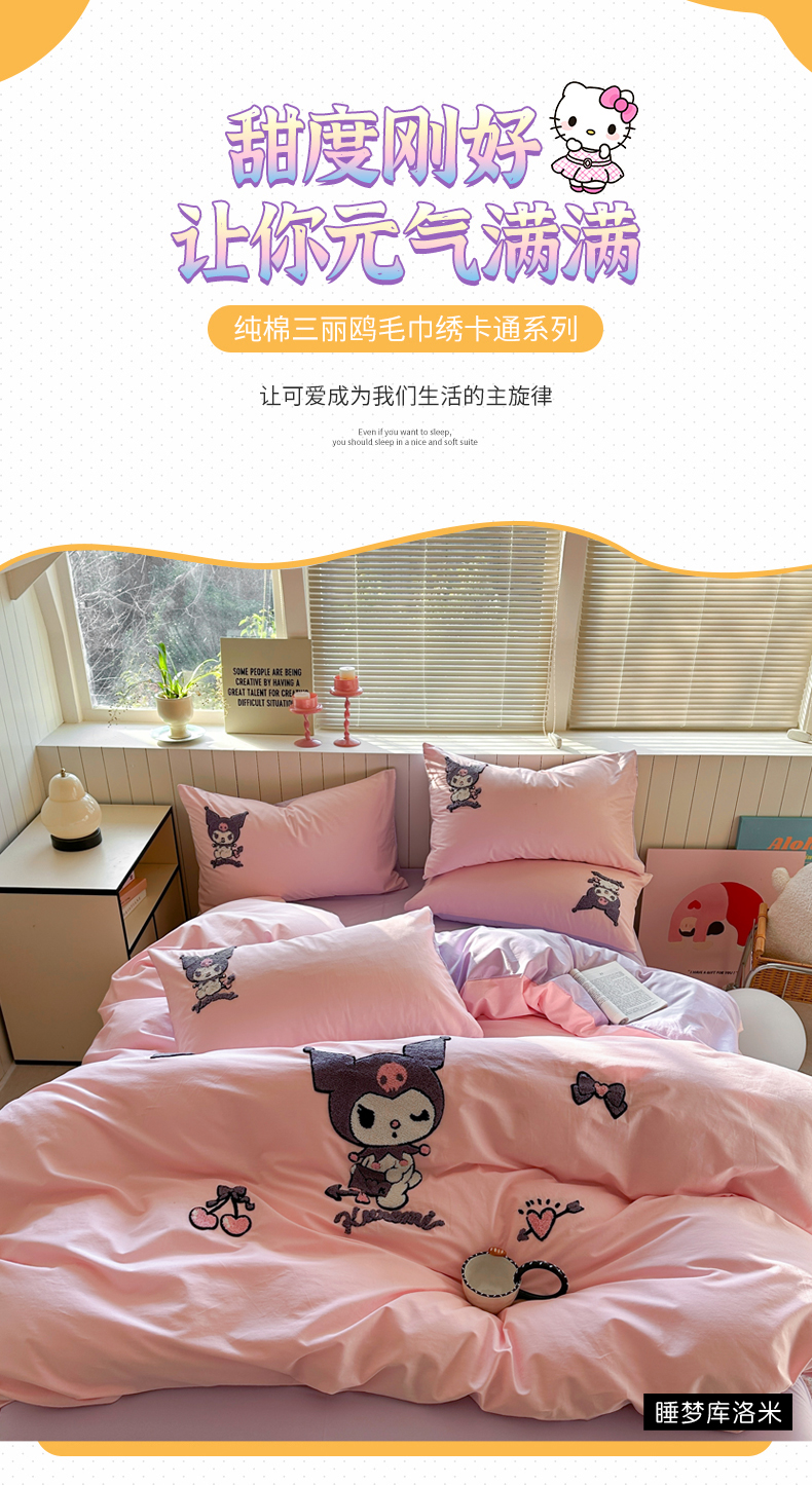 金爱家 2025新款全棉毛巾绣四件套 毛巾绣-睡梦库洛米