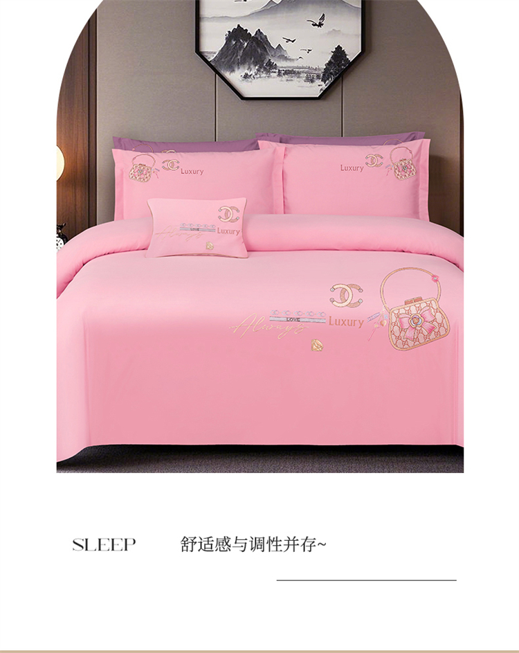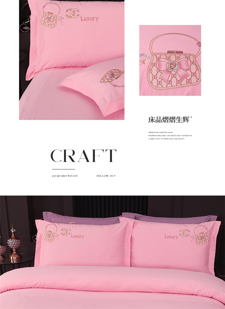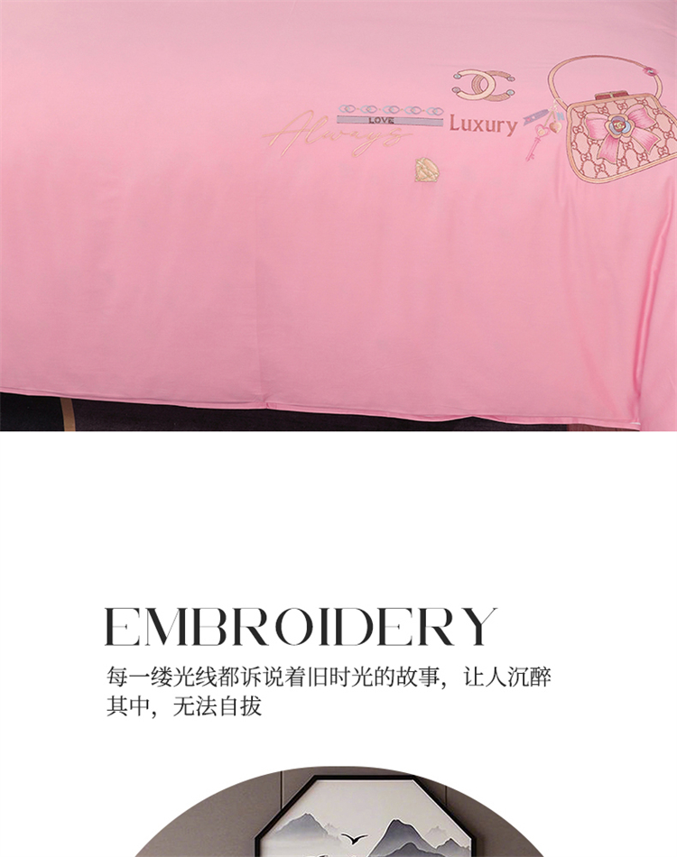 商品名称:浩情国际婚庆供货中心 2026新款100支全棉高端刺绣中式风四件套--米尔顿系列 米尔顿-粉玉