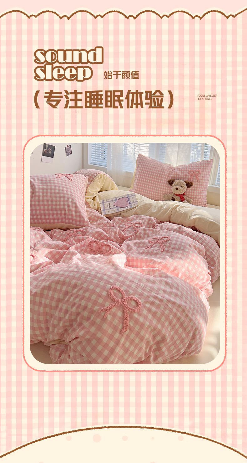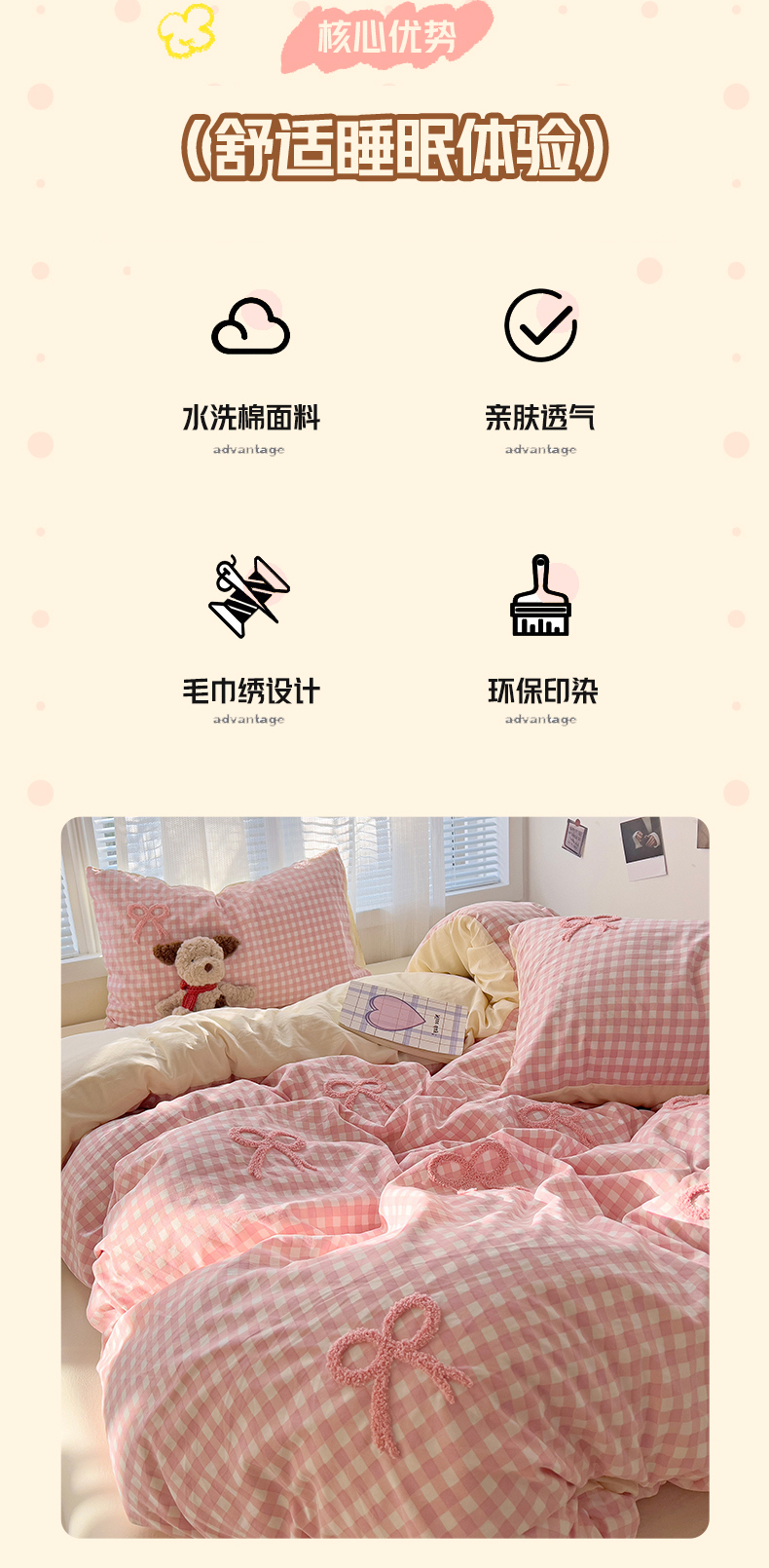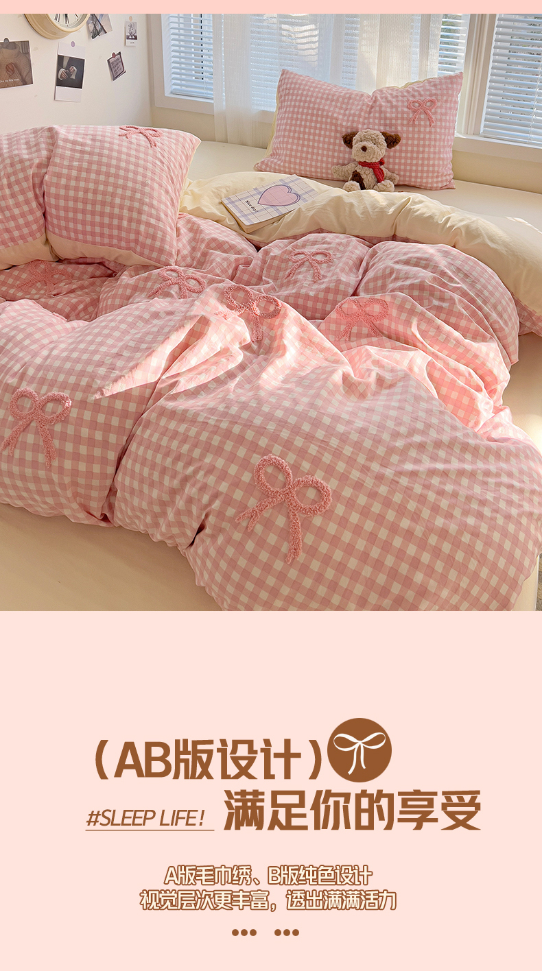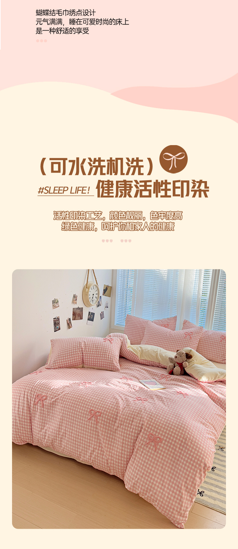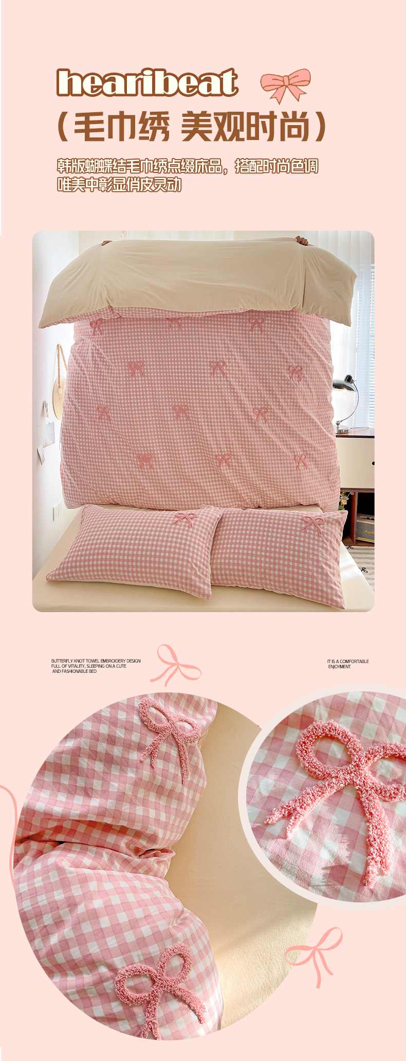 当前位置: 91家纺网 > 商品网购 > 床品套件 > 四件套 > 毛巾绣四件套 > 灰鲸2025新款ins韩系软妹风蝴蝶结毛巾绣四件套 蝴蝶结(粉格+奶油黄)