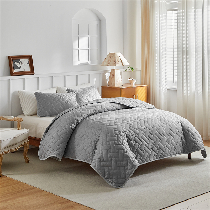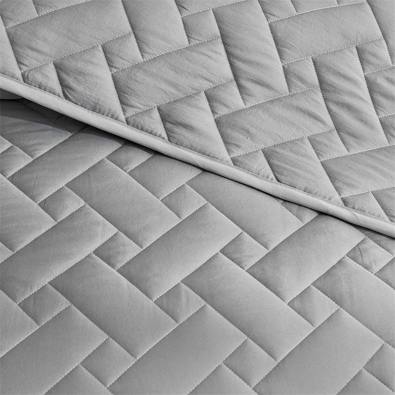商品名称:温宁家纺 2025新款长方格床盖三件套 国外薄被 长方格-灰色
