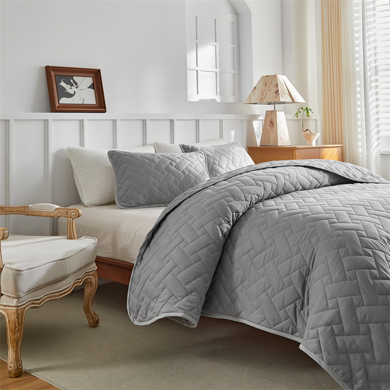 温宁家纺 2025新款长方格床盖三件套 国外薄被 长方格-灰色