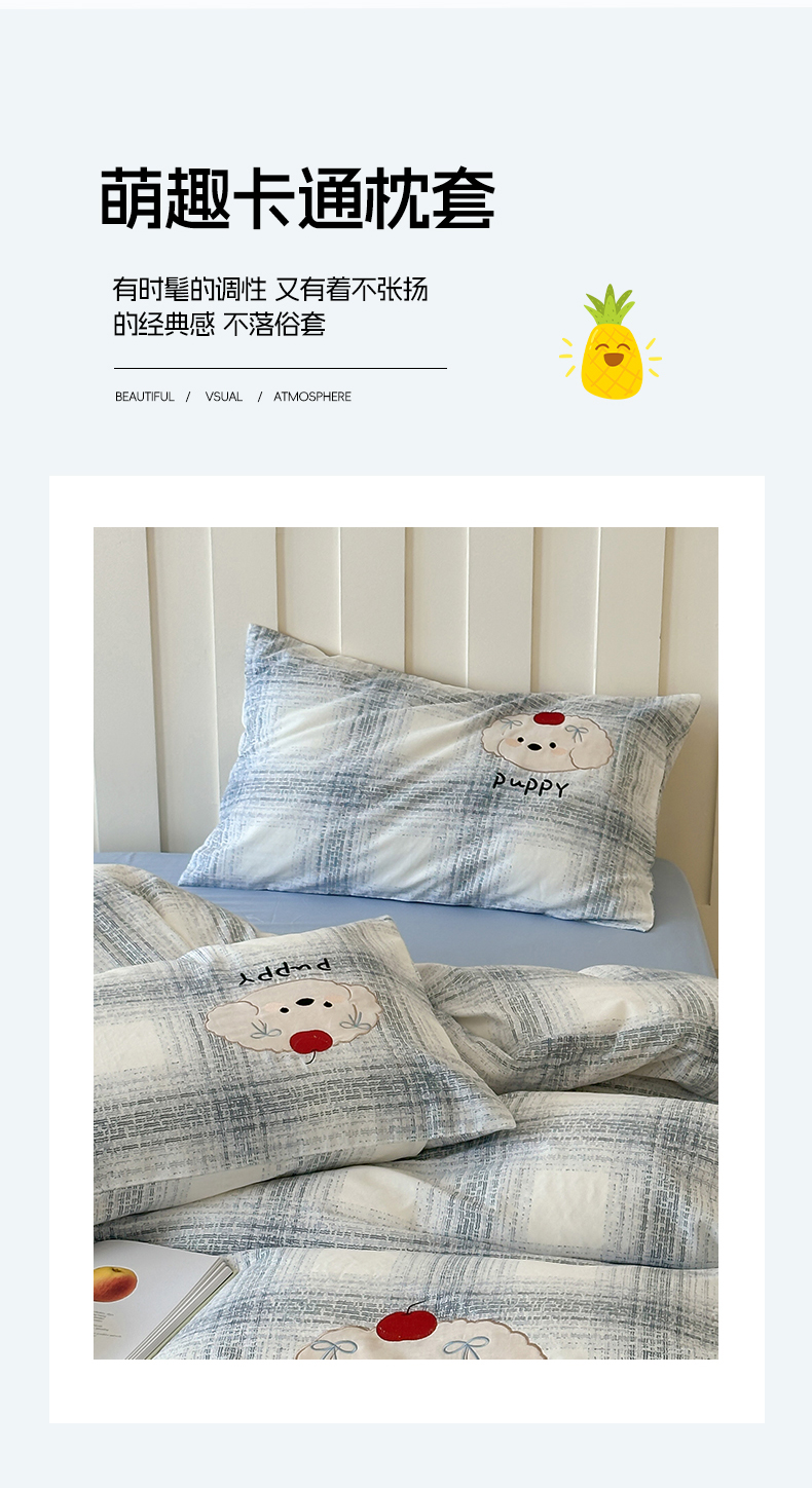(总)圆岛家纺 2023新款可单卖混搭枕套合集2,波点字,简单生活,苹果,圈圈蓝,条纹狗,条纹黑,晚安兰,汪汪仔,椰子树