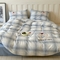 (总)圆岛家纺 2023新款原创牛奶绒印花保暖四件套,中红蓝条,天空蓝,奶油紫,尚黑细条,枣红细条,棋盘格绿,绿茵蓝条,菱星粉,蓝松绿条,黑白菱星