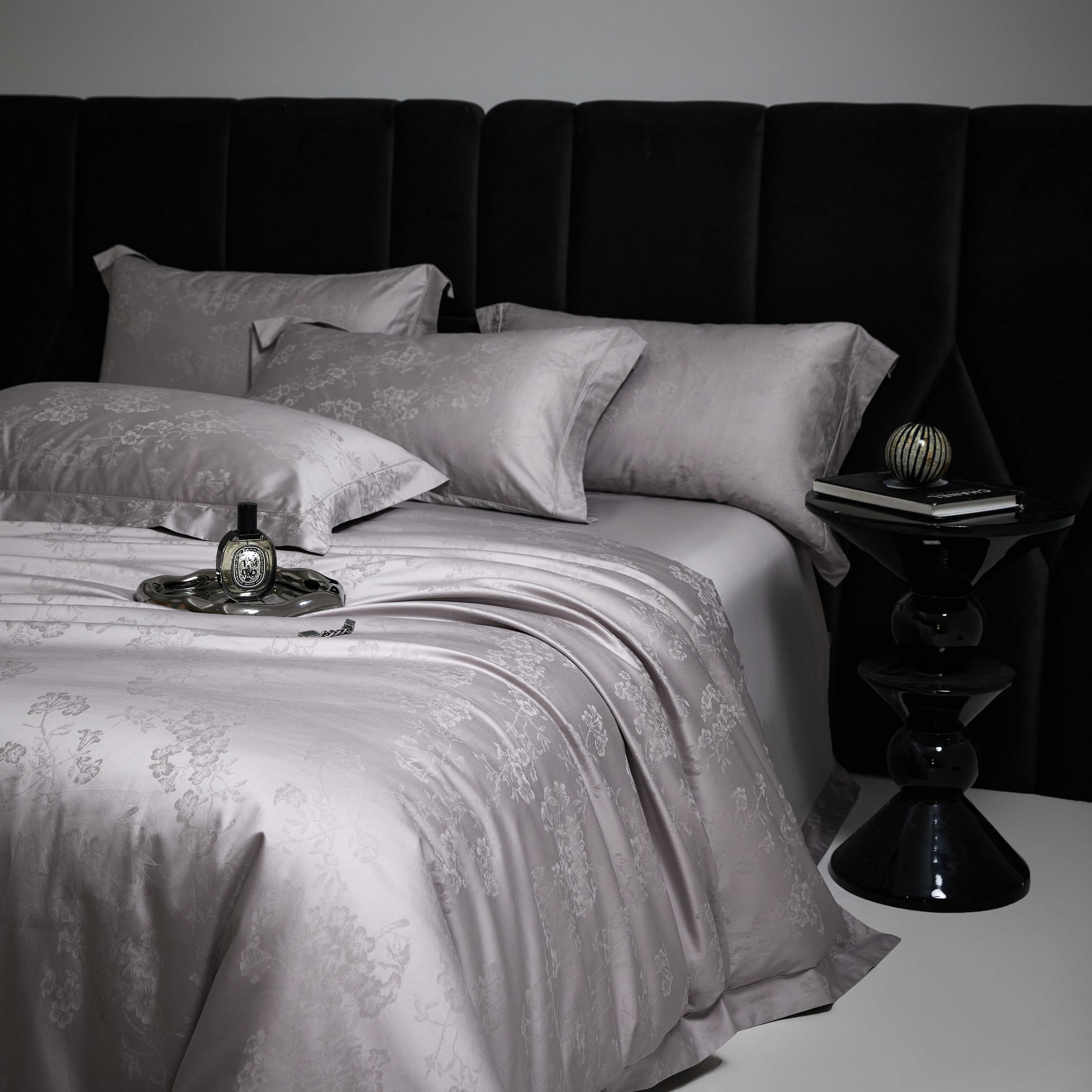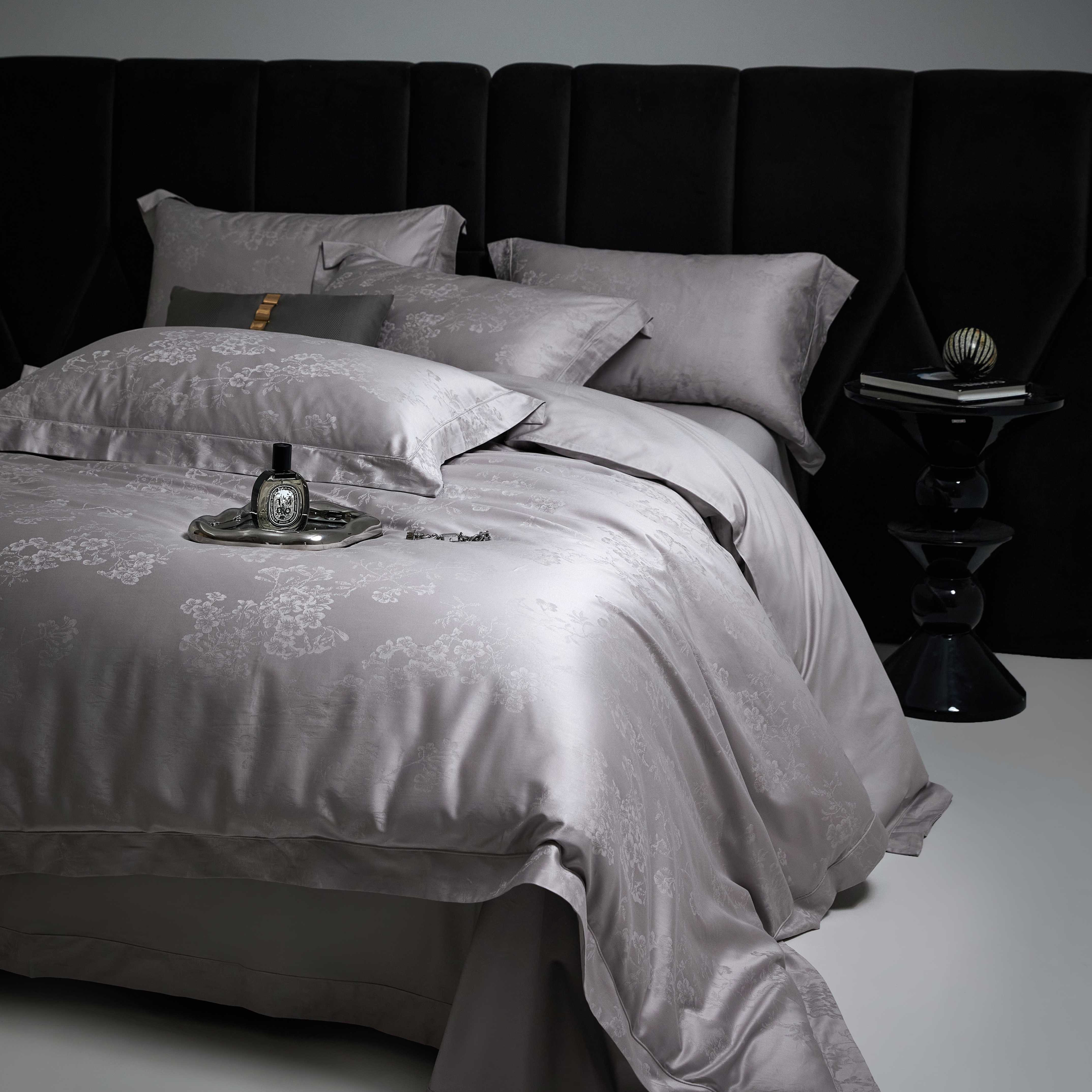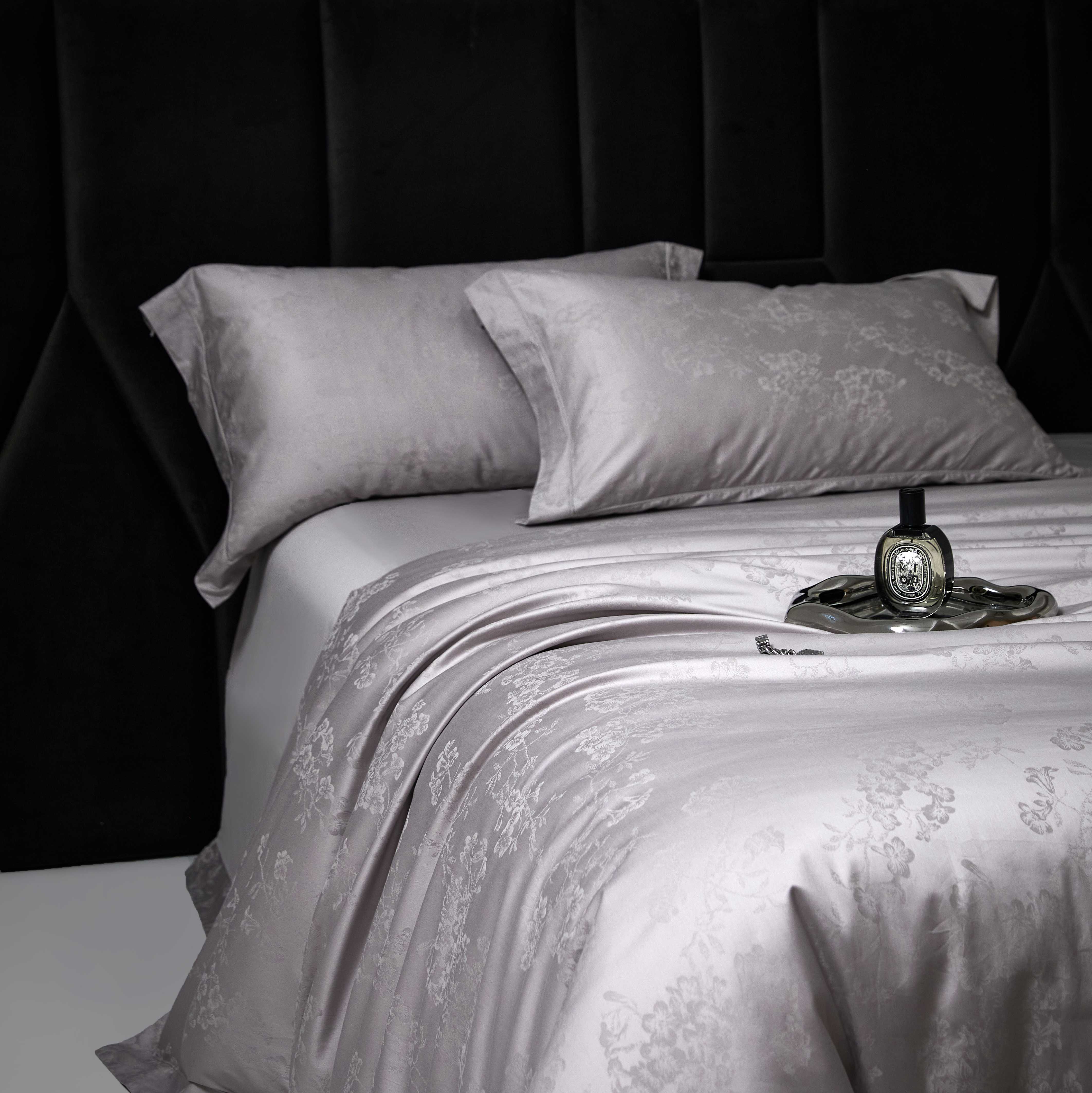 榻尚家居 2025春夏新款长绒棉全棉纯棉贡缎提花手工立体埋绳工艺四件套 花香风呤-浅灰