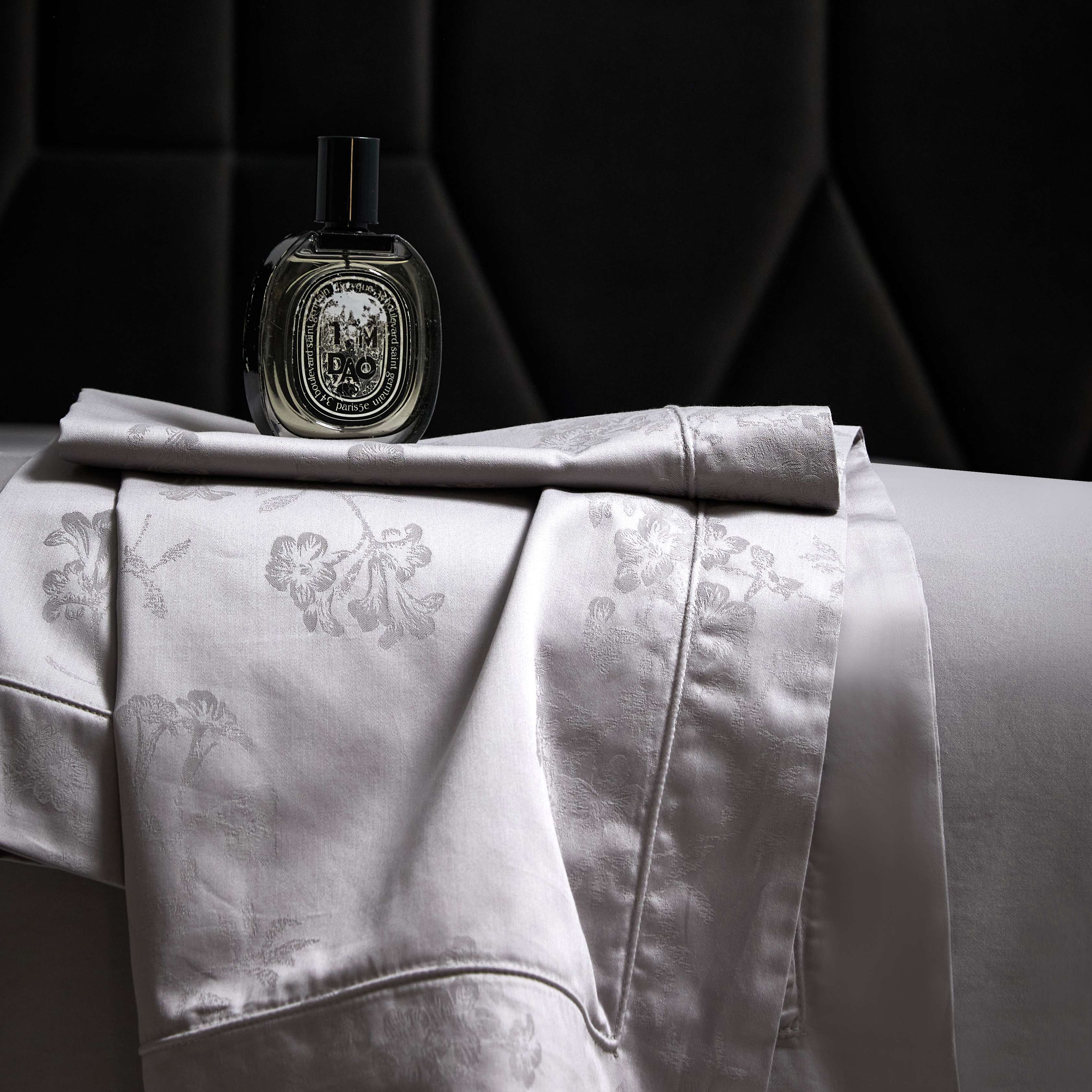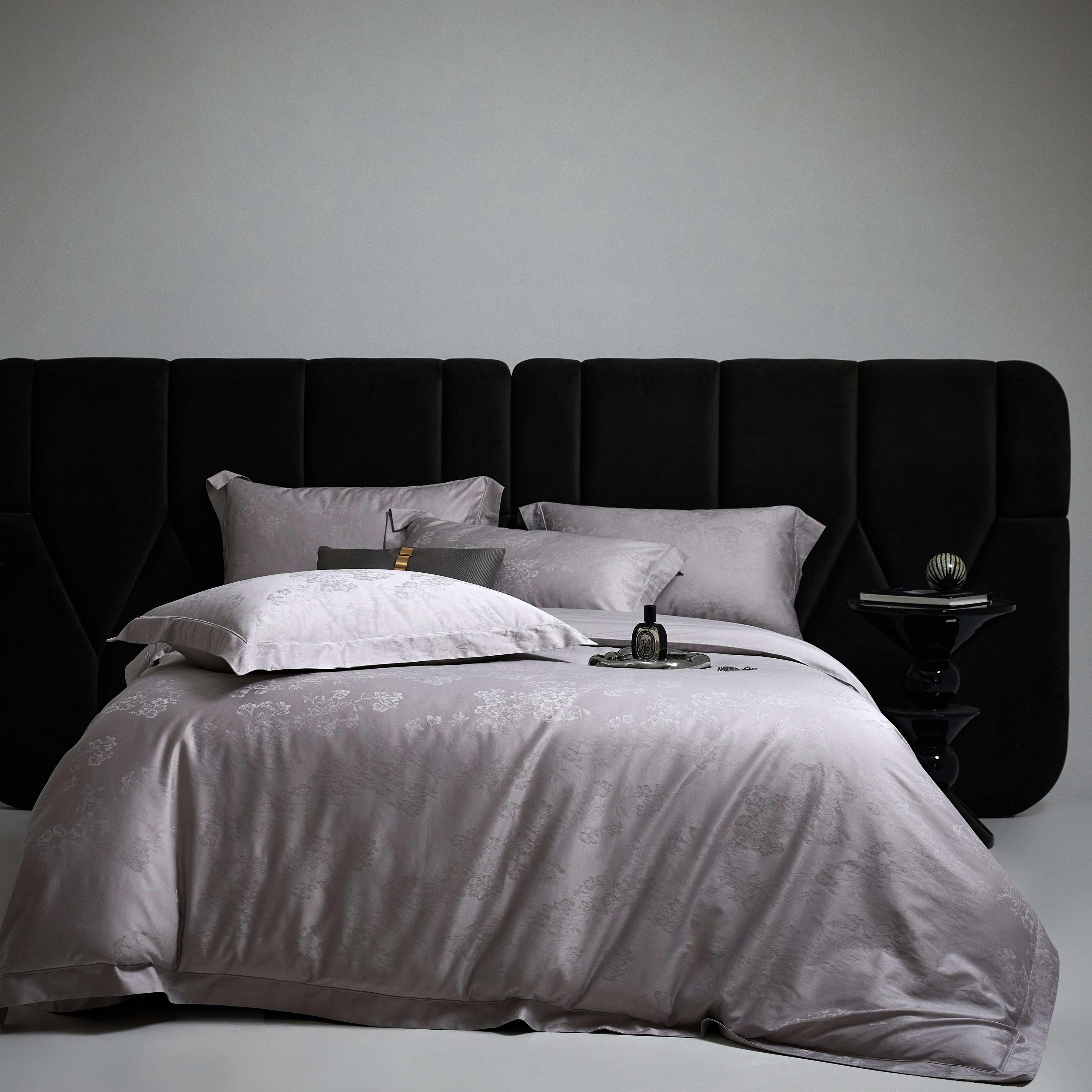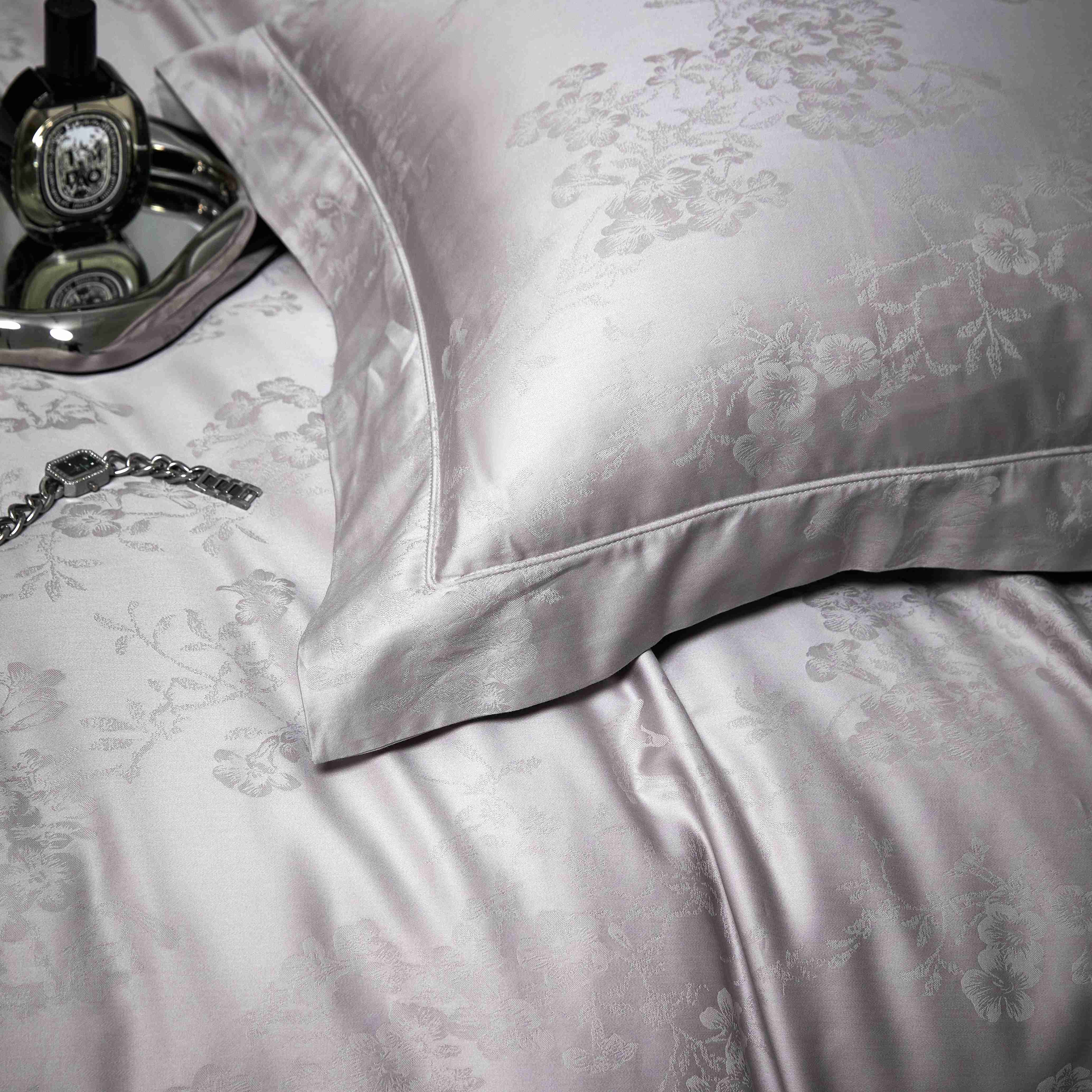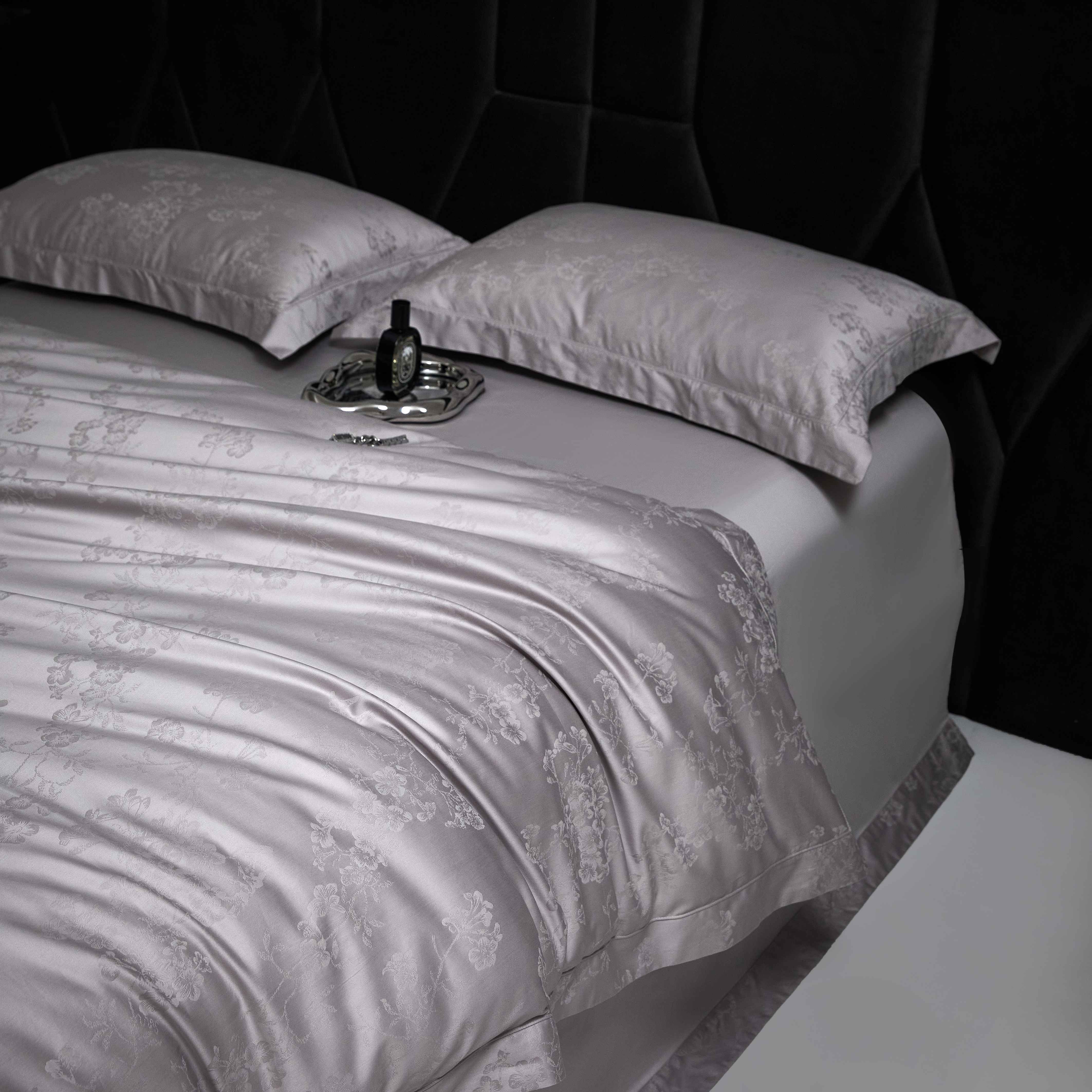 榻尚家居 2025春夏新款长绒棉全棉纯棉贡缎提花手工立体埋绳工艺四件套 花香风呤-浅灰