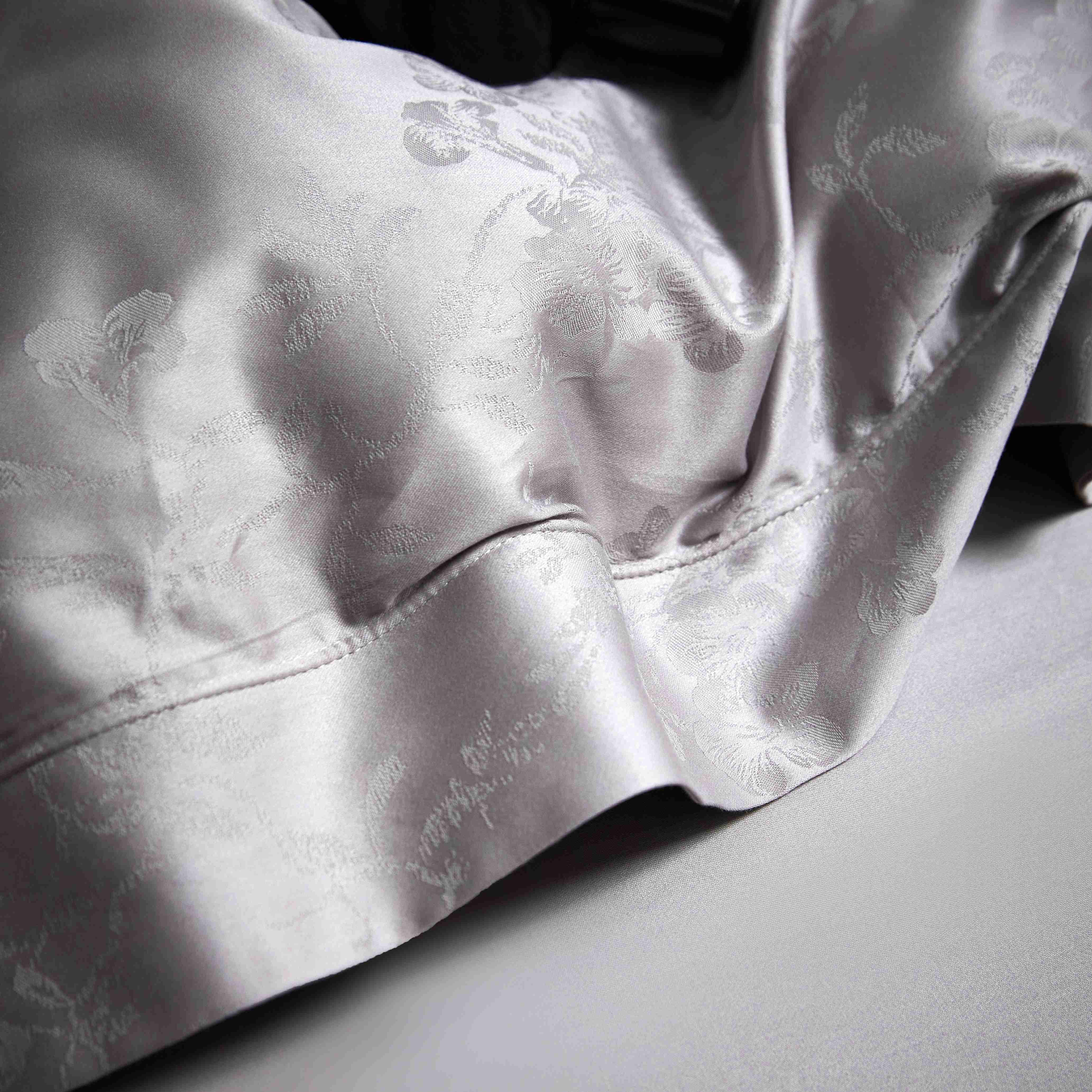 商品名称:榻尚家居 2025春夏新款长绒棉全棉纯棉贡缎提花手工立体埋绳工艺四件套 花香风呤-浅灰
