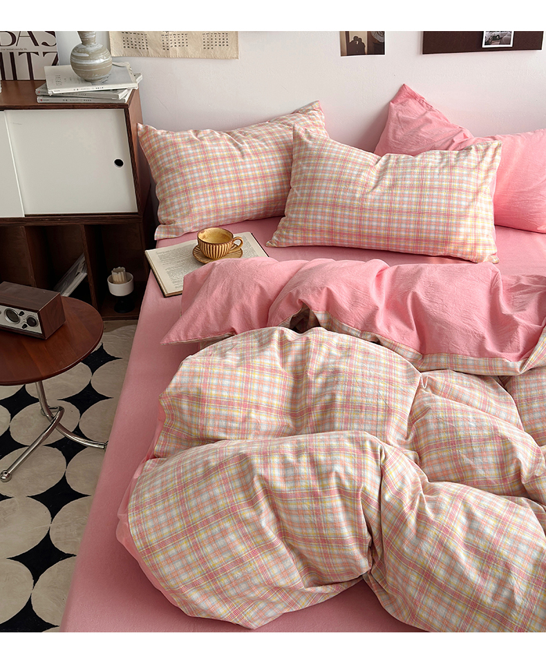 (总)水洗的故事 2025新款全棉色织水洗棉四件套,简序-粉,简序-灰,简序-蓝,简序-米黄,绿韵,樱织,云汐,紫韵粉格