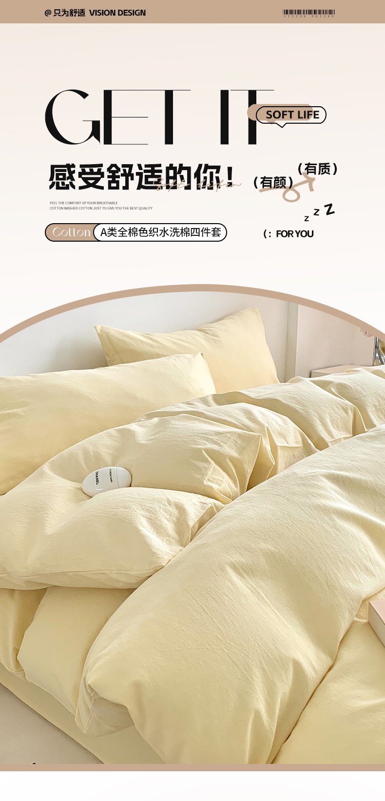 当前位置: 91家纺网 > 商品网购 > 床品套件 > 四件套 > 色织四件套 > 水洗的故事 2025新款色织水洗棉多巴胺纯色款四件套 嫩粉