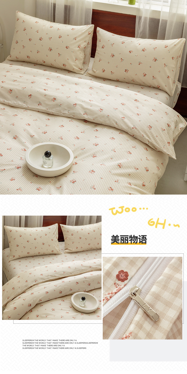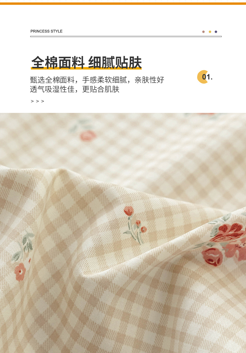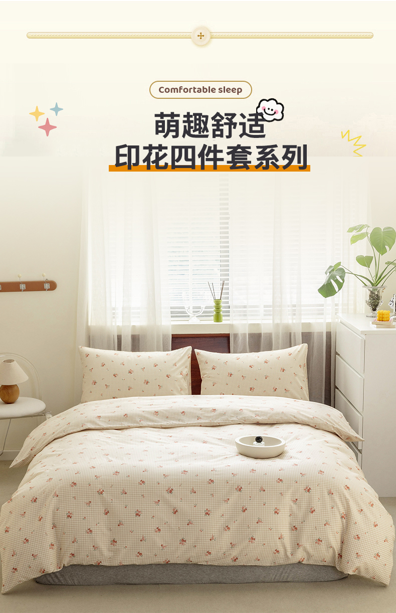 商品名称:(总)绫韵2025春夏新款ins清新卡通碎花全棉13372精梳纯棉四件套系列
