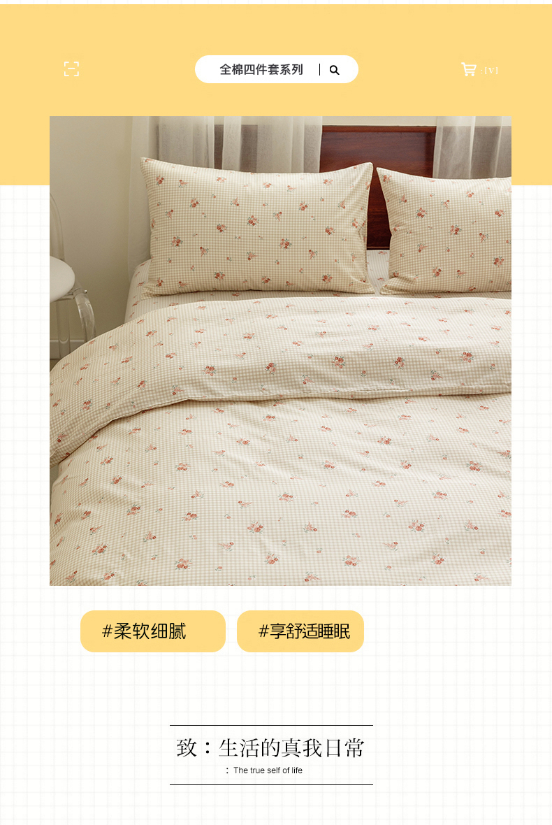 (总)绫韵2025春夏新款ins清新卡通碎花全棉13372精梳纯棉四件套系列