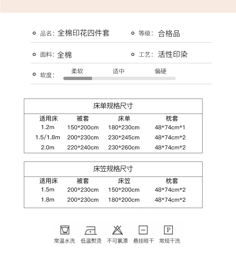 1.5/1.8米床单款四件套(被套200*230,床单230*245,枕套48*74一对)