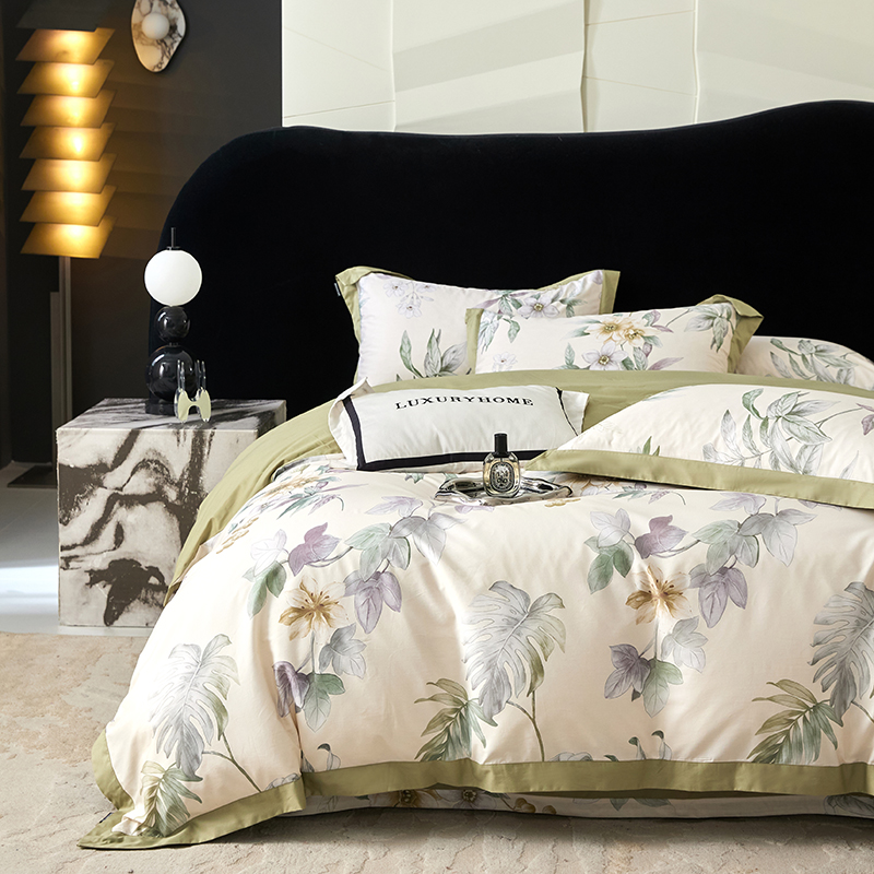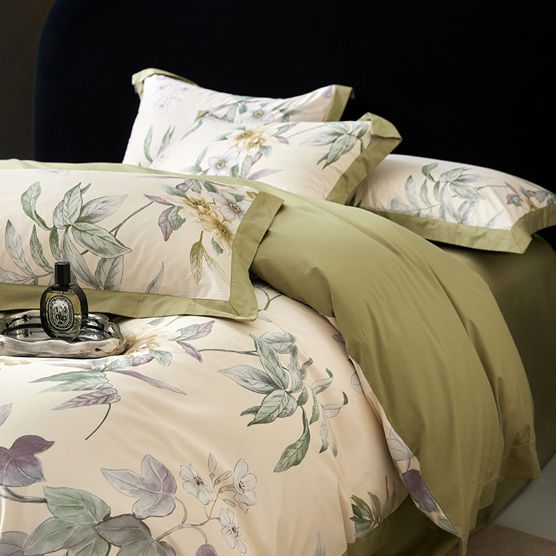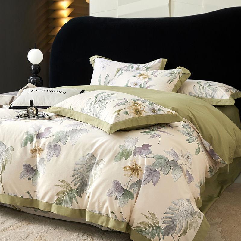 (总)薏思家纺 2025新款全棉100支数码印花生态磨毛轻奢款四件套-花边系列,橘子海,向云端,寻野-绿
