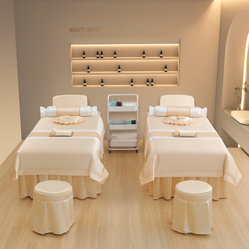 (总)芙怡 2025春夏新款8031款棉麻美容床罩四件套-未央系列,未央-蝶翅蓝,未央-格调 灰,未央-蜜桃 粉,未央-浅咖,未央-浅驼,未央-斑斓绿