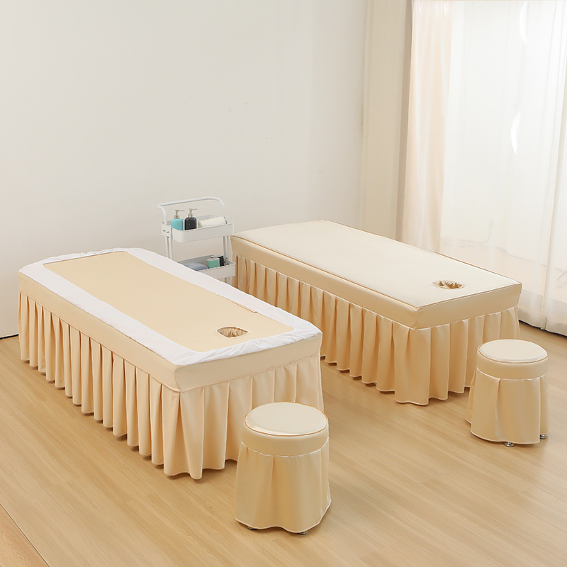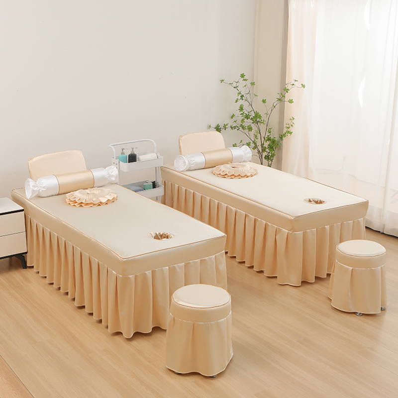 芙怡 2025春夏新款8028款冰丝绒美 容床罩-一字绣系列 一字绣-米黄
