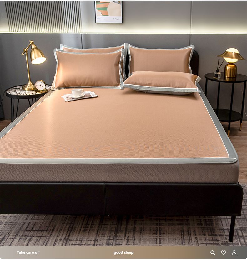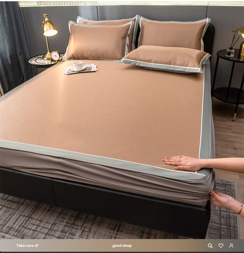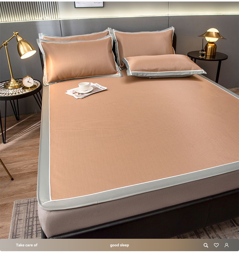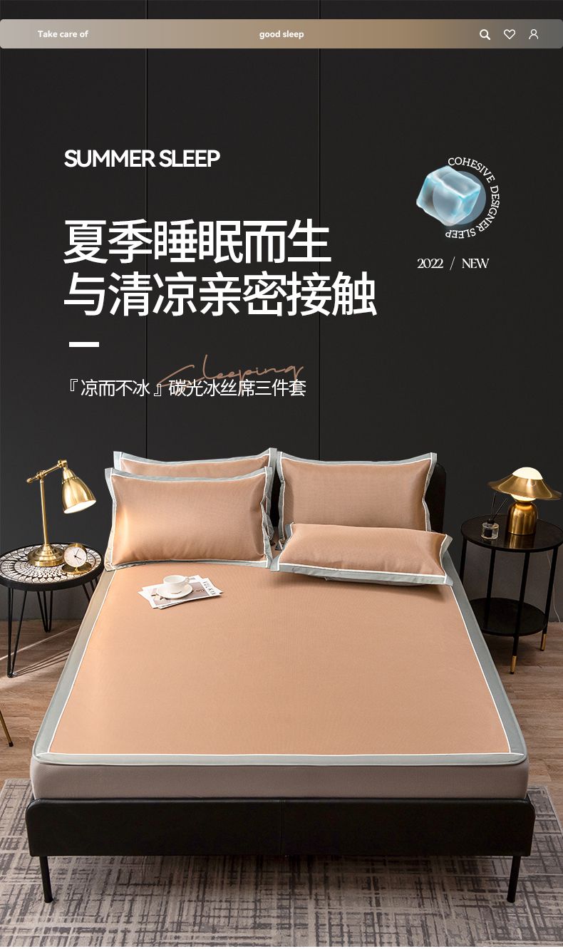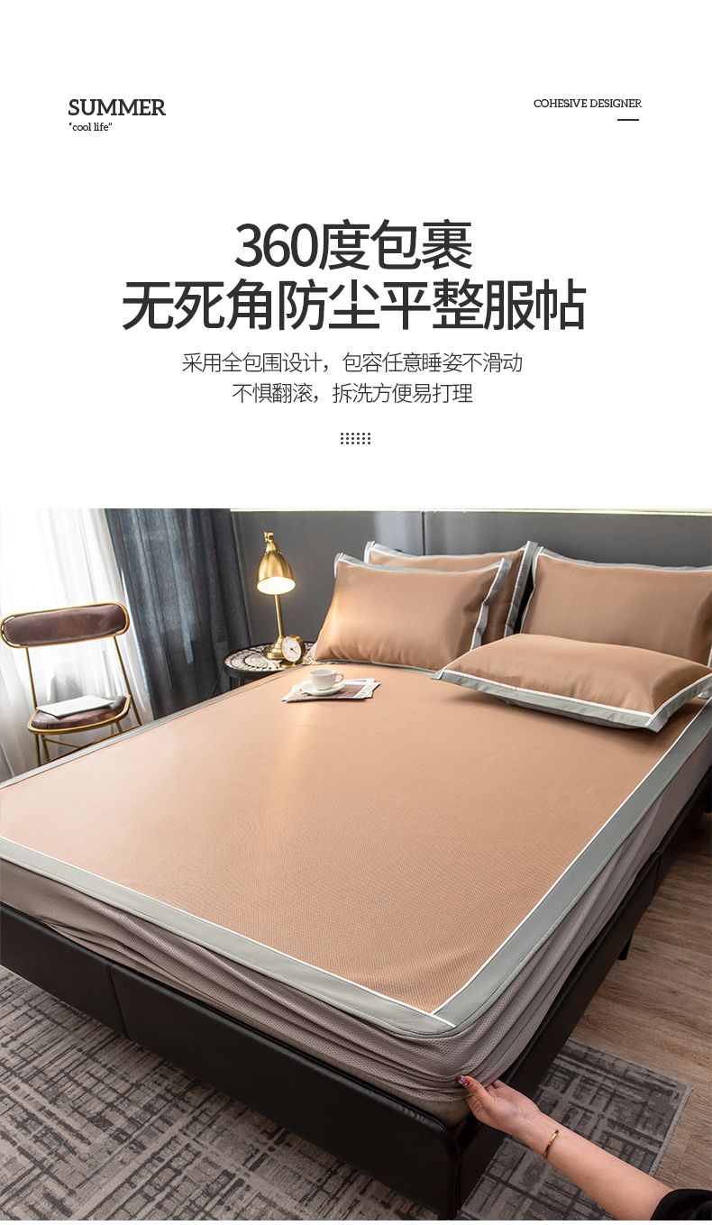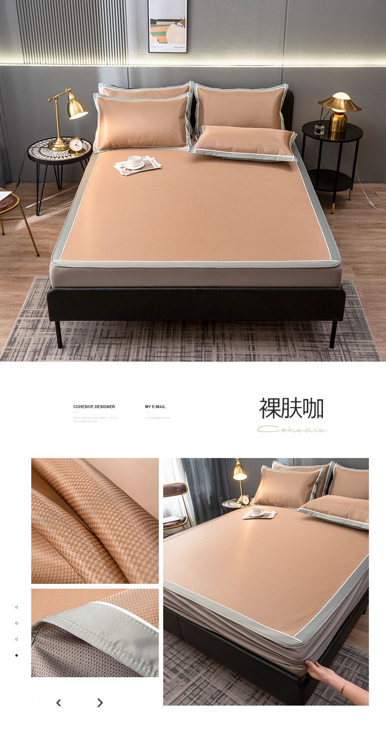 摩妮卡 2025新款碳光席床笠三件套可洗冰丝席 裸肤咖