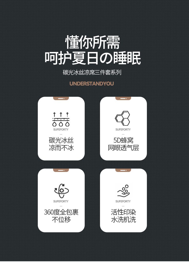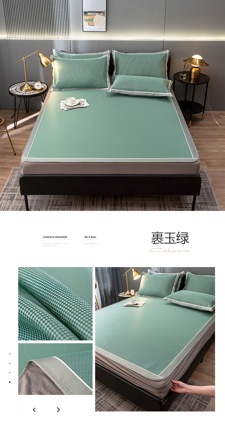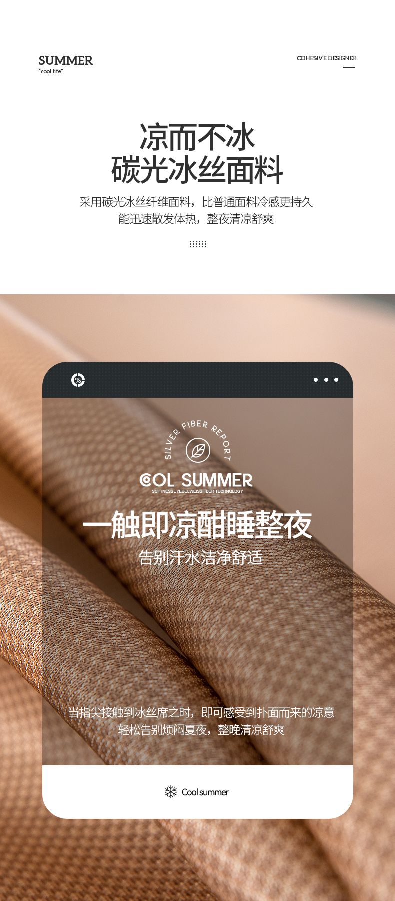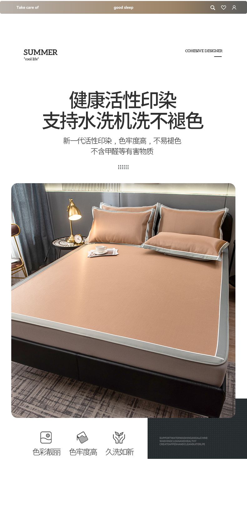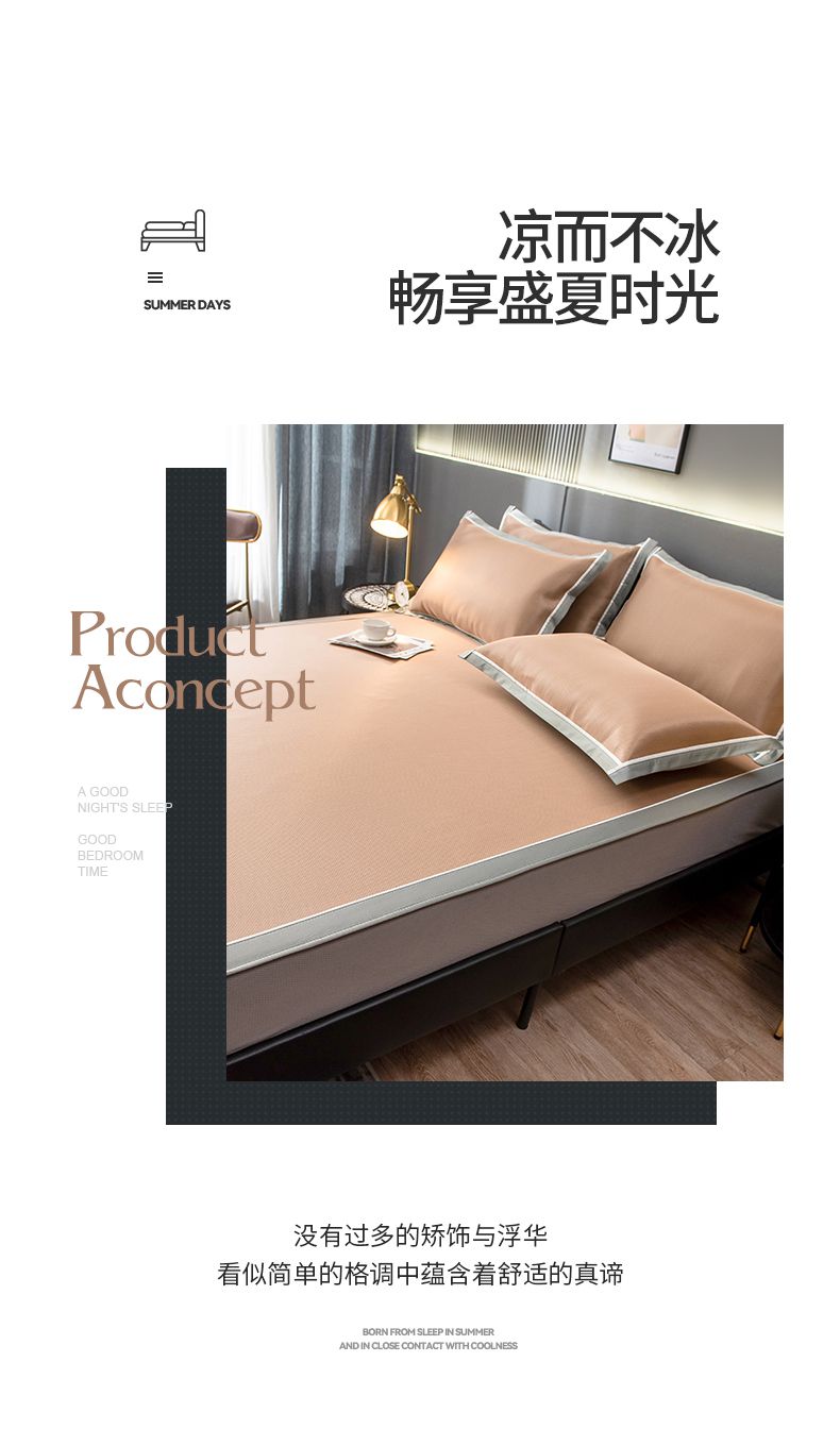 摩妮卡 2025新款碳光席床笠三件套可洗冰丝席 裸肤咖