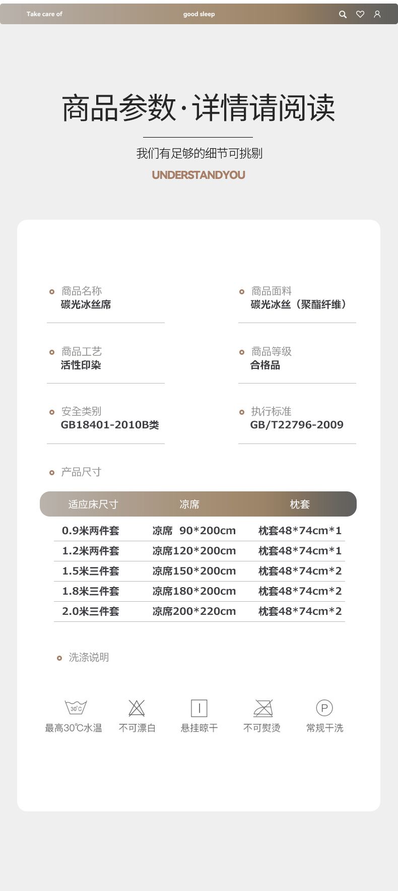商品名称:摩妮卡 2025新款碳光席床笠三件套可洗冰丝席 裸肤咖