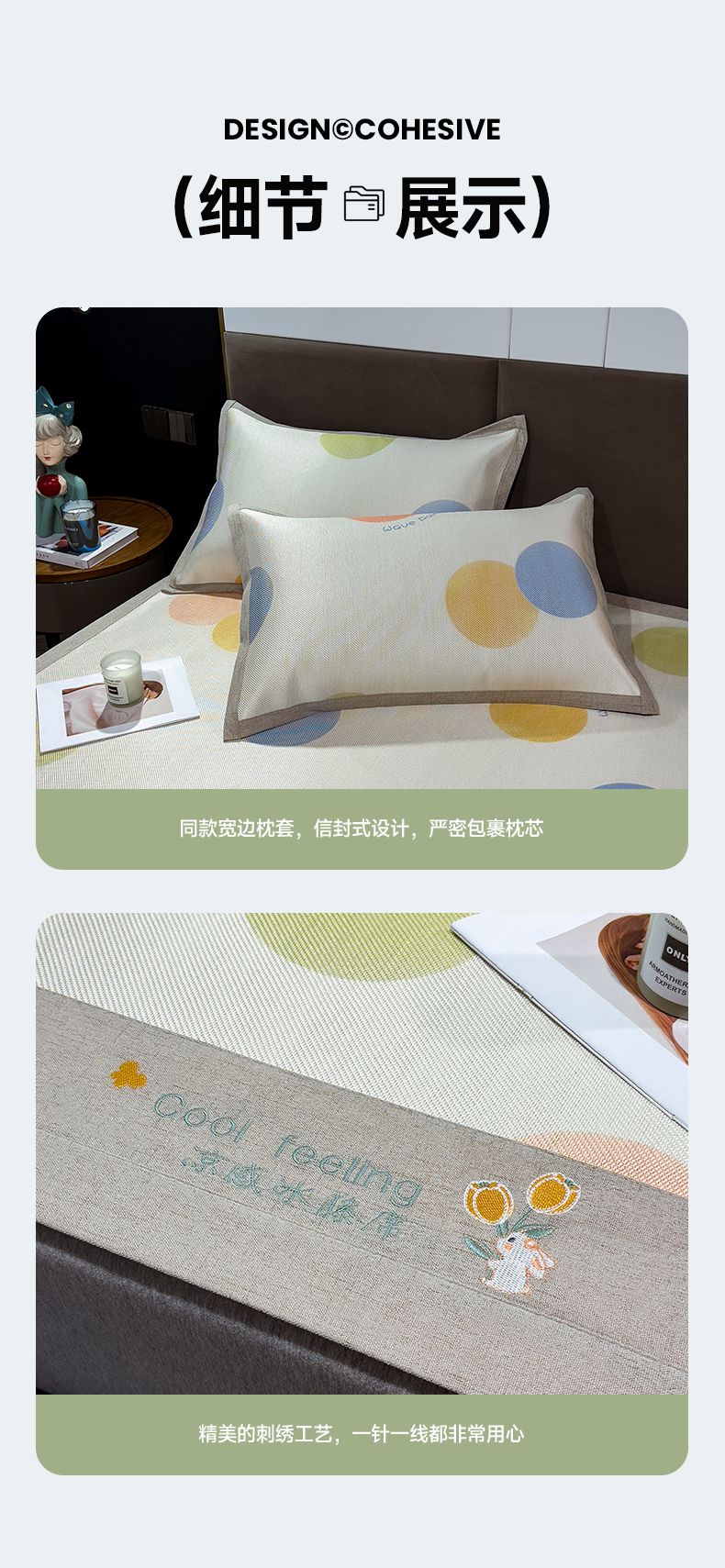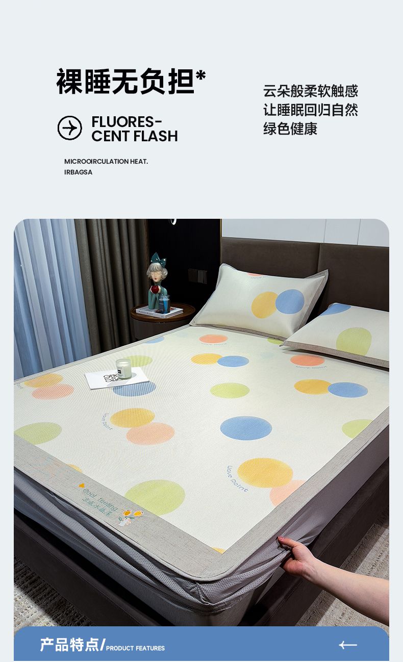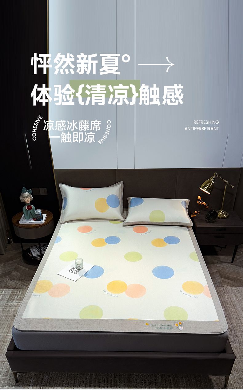 商品名称:摩妮卡 2025新款数码印花凉席冰藤席床笠款三件套 怦然心动
