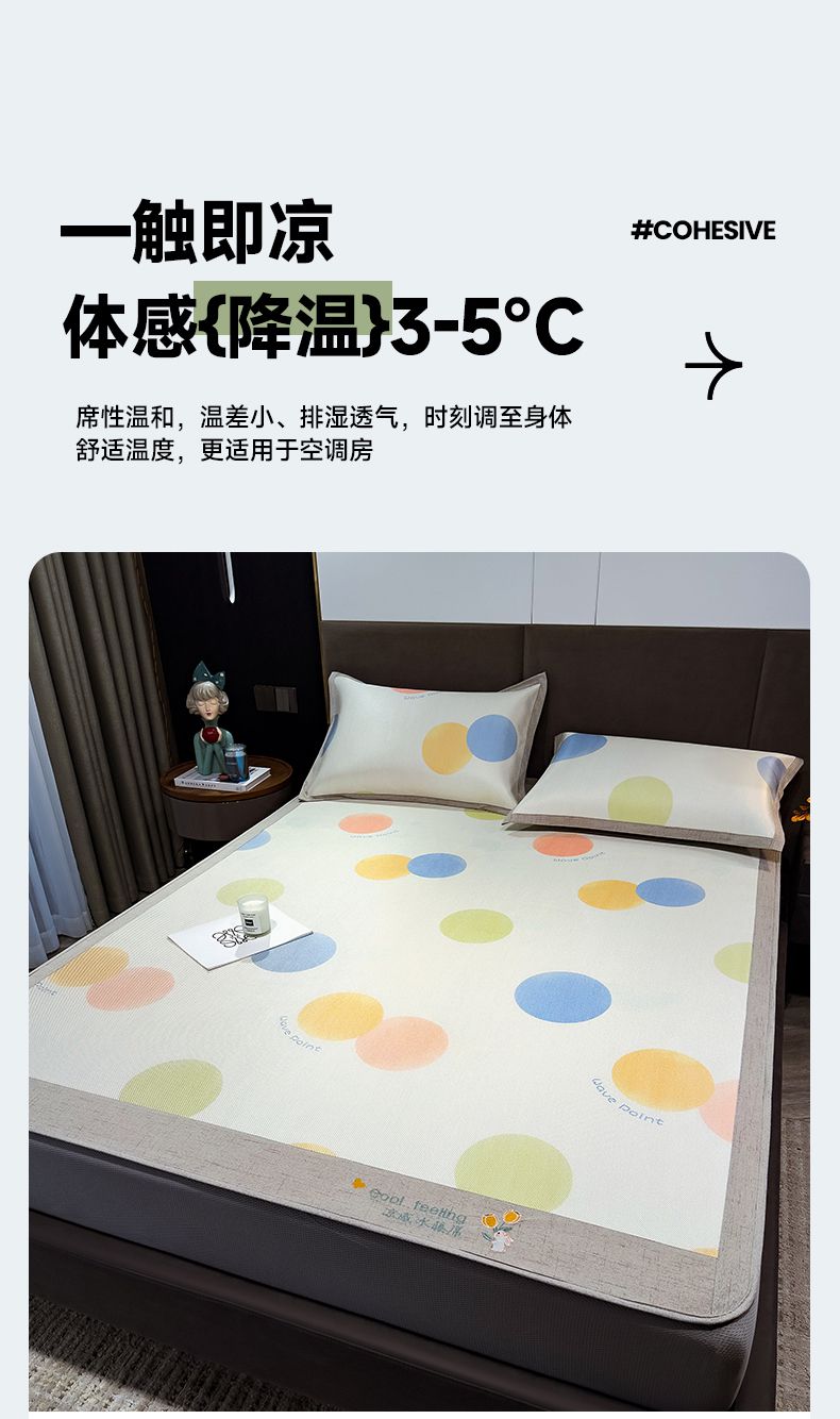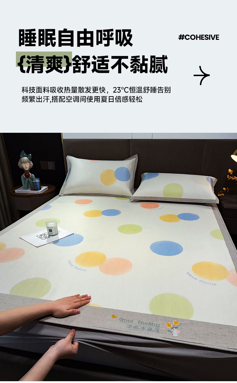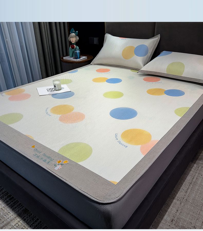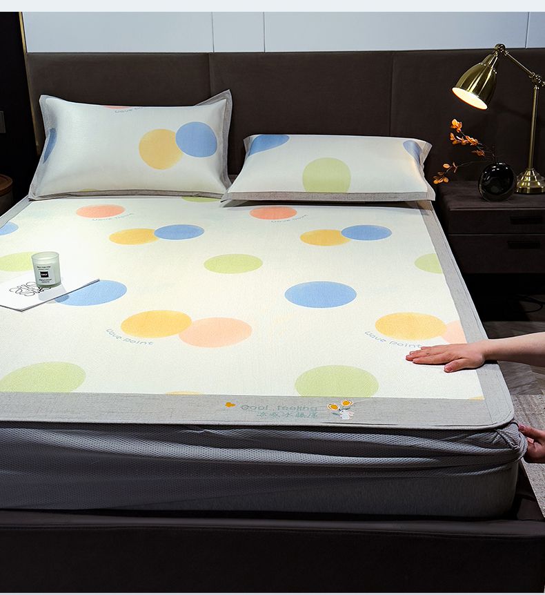 商品名称:摩妮卡 2025新款数码印花凉席冰藤席床笠款三件套 怦然心动