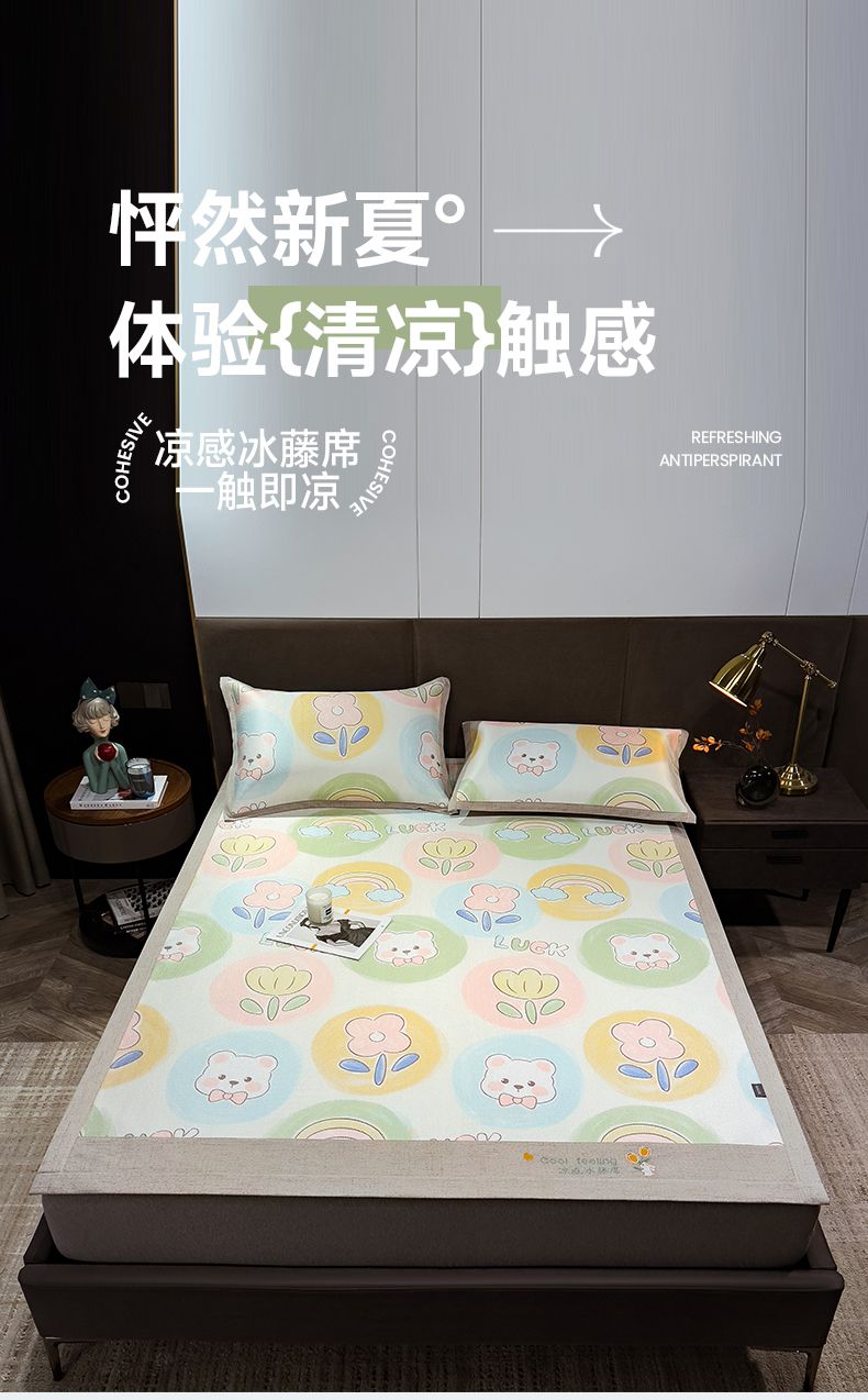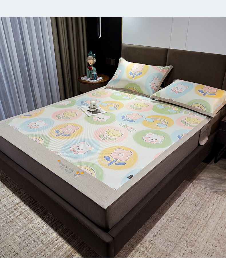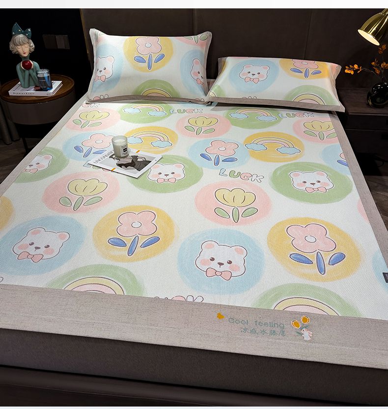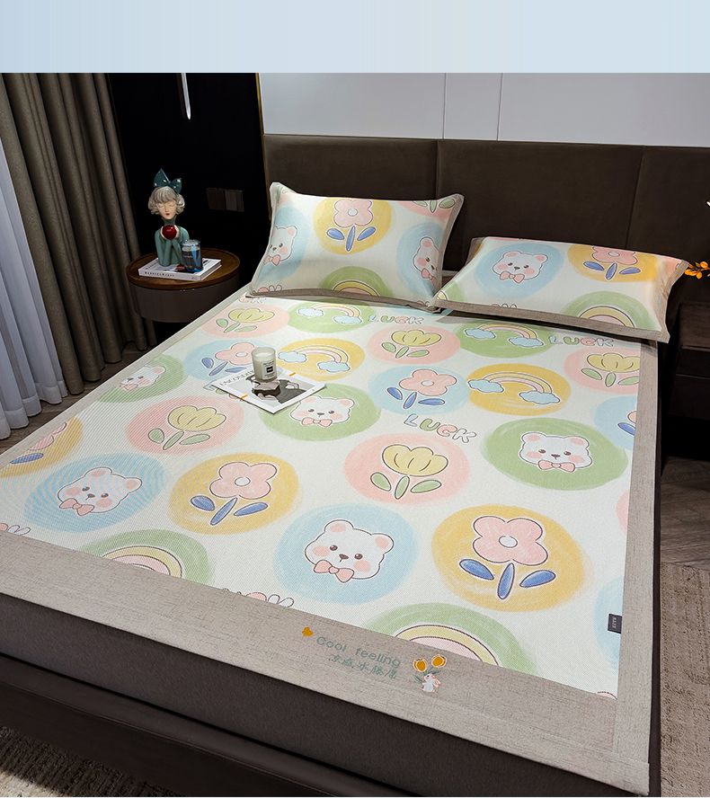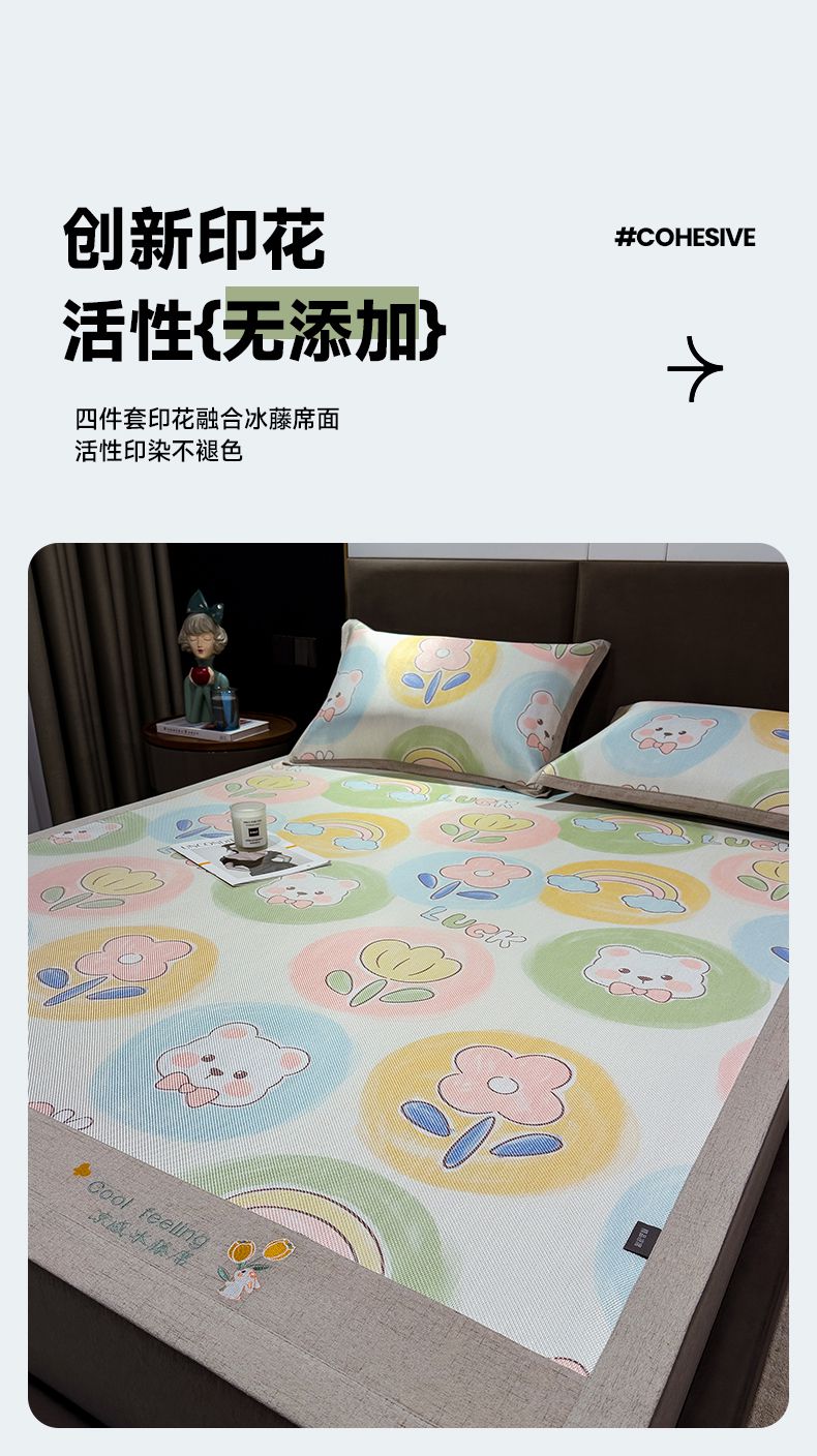 商品名称:摩妮卡 2025新款数码印花冰藤席床席款三件套 曼花熊