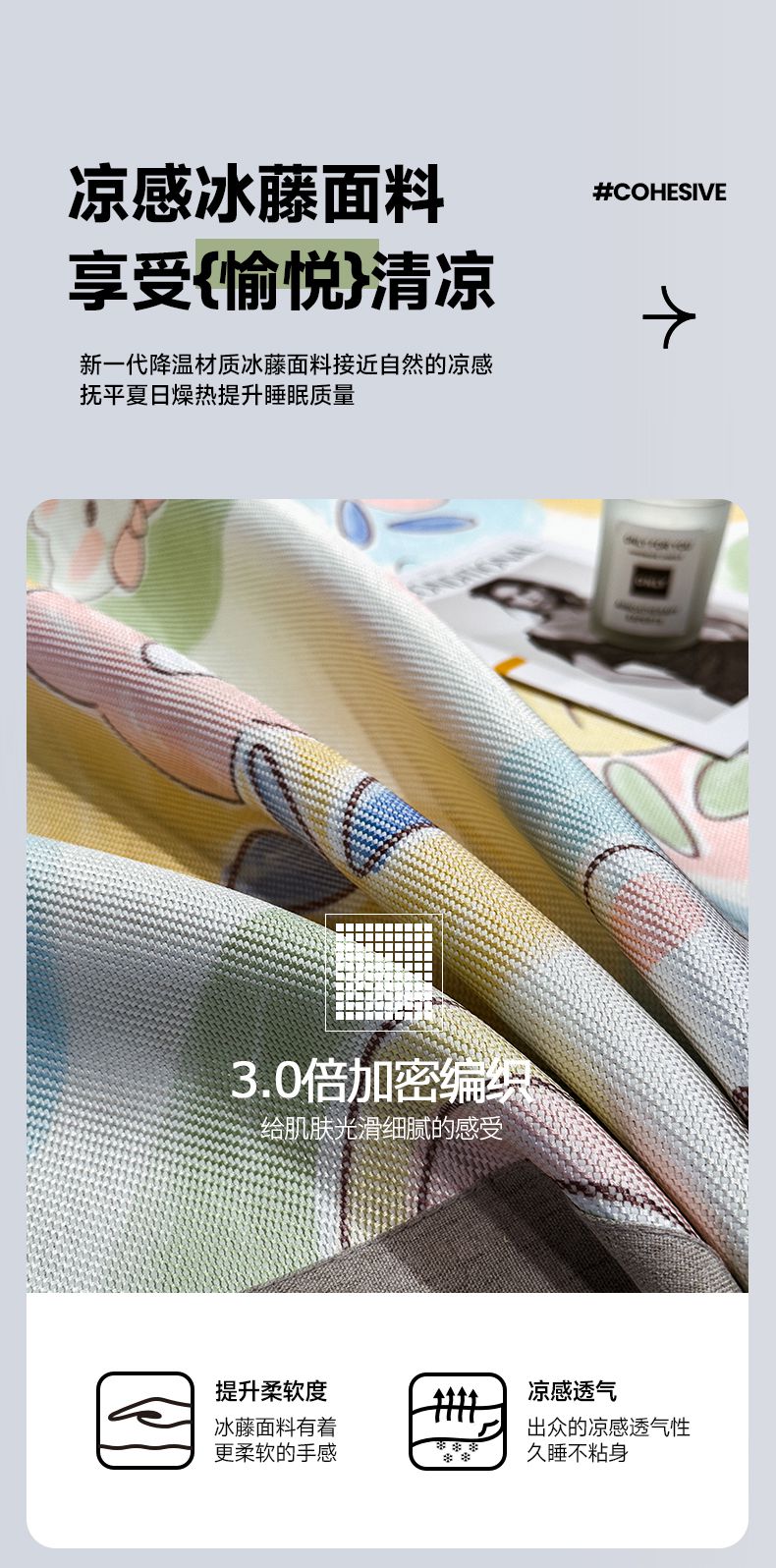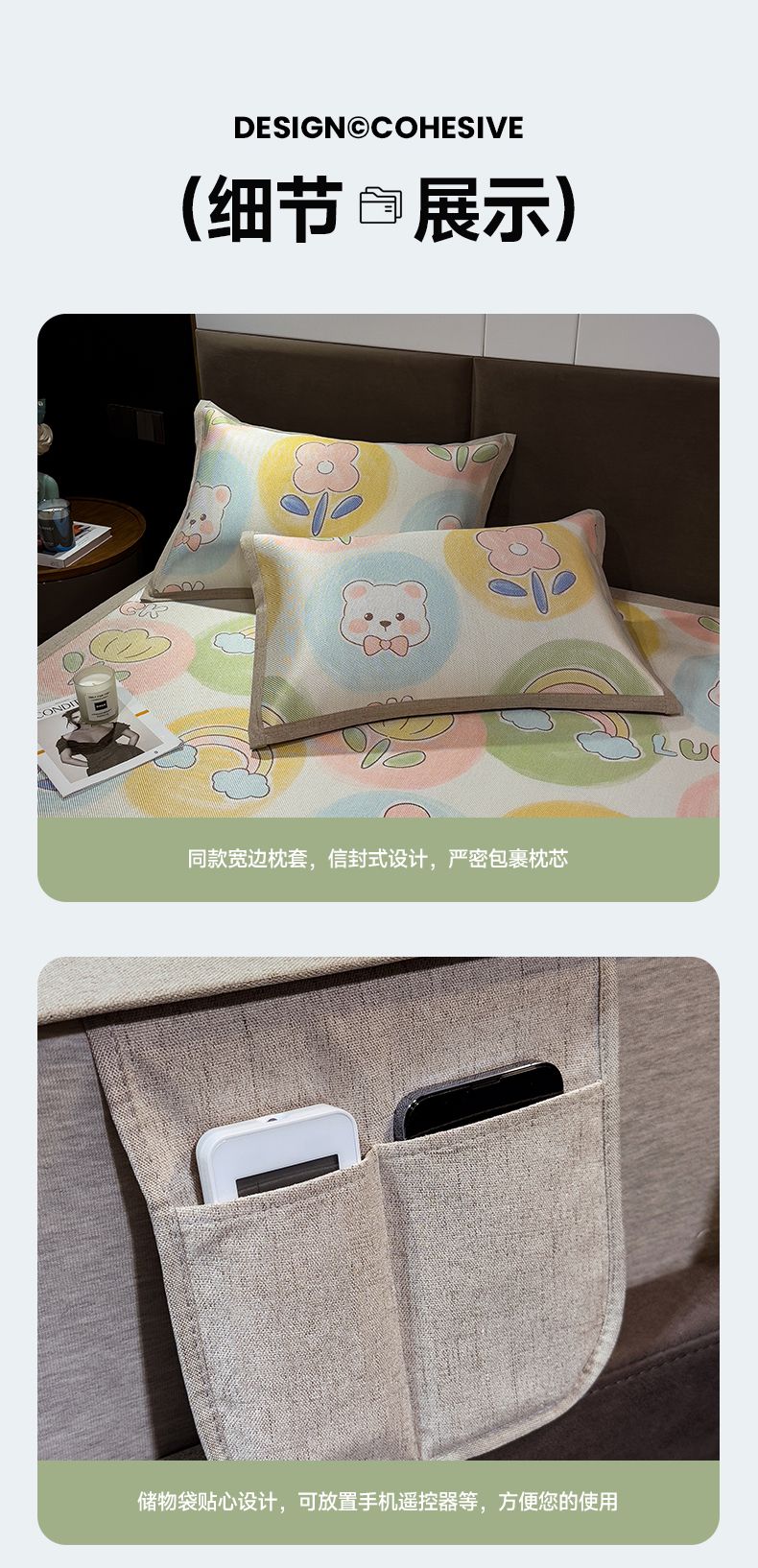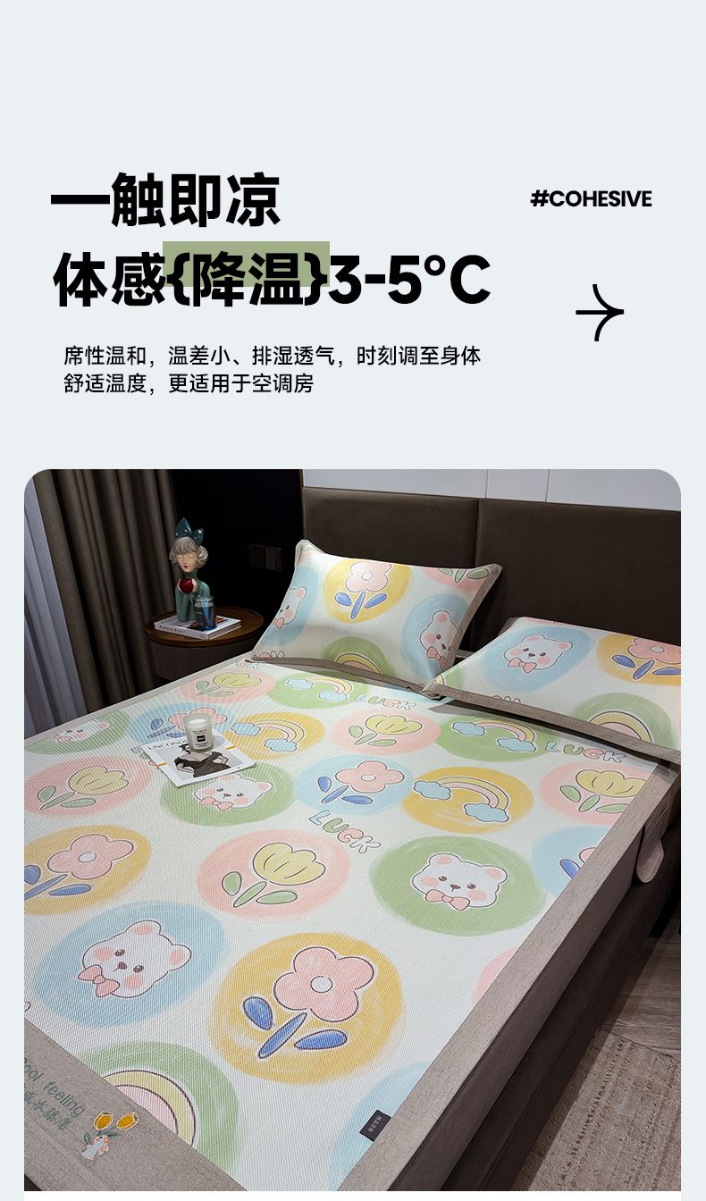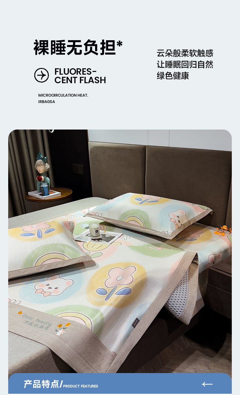 商品名称:摩妮卡 2025新款数码印花冰藤席床席款三件套 曼花熊