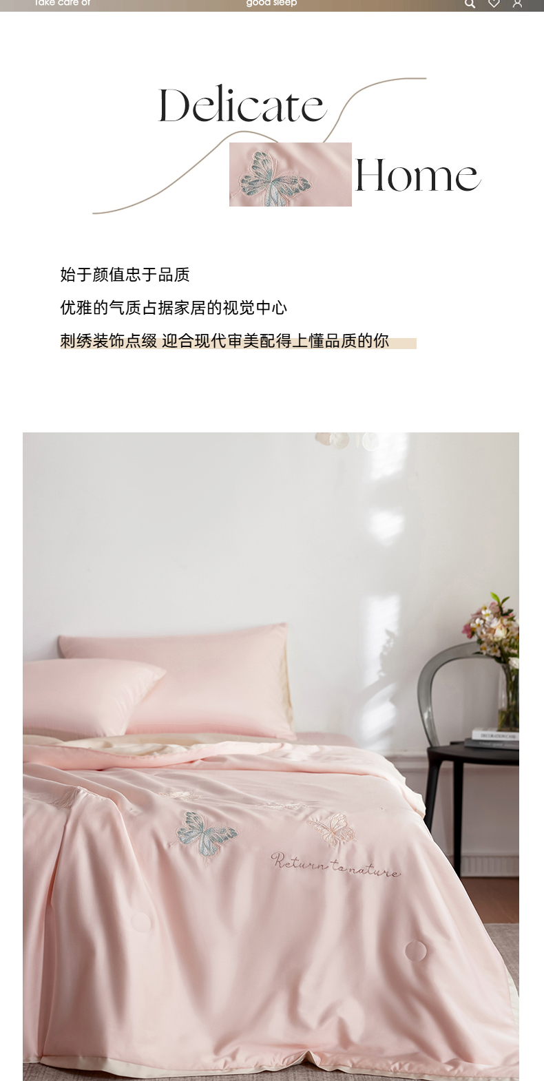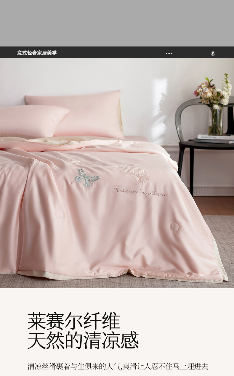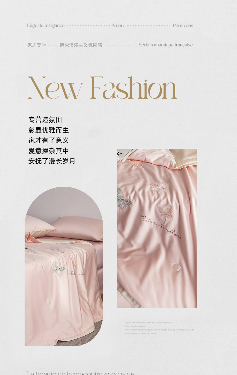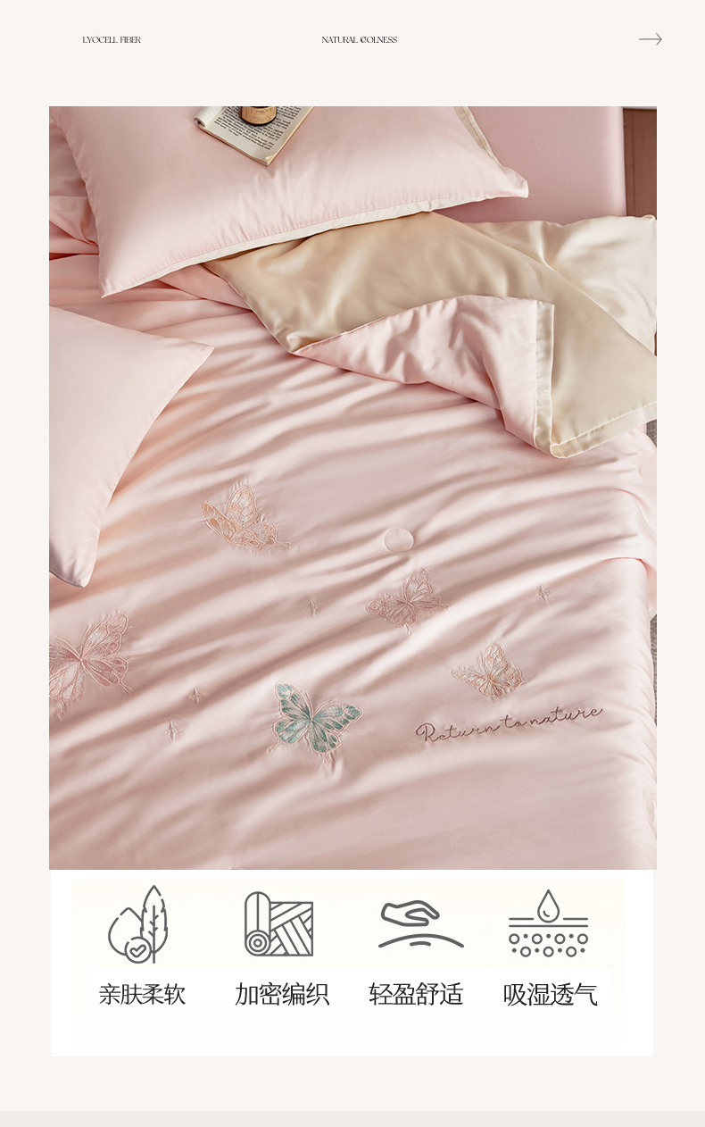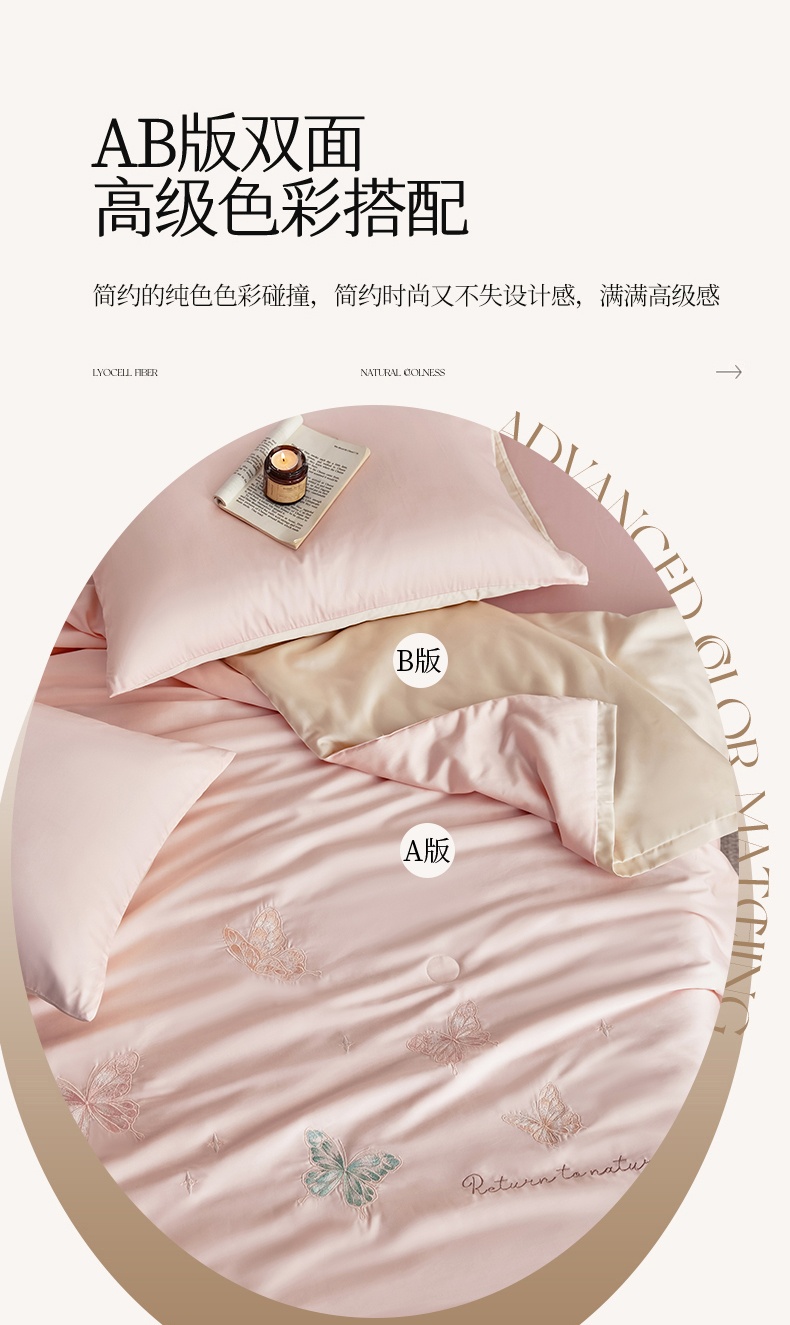 当前位置: 91家纺网 > 商品网购 > 床品套件 > 四件套 > 夏被四件套 > 纪梵茜 2025新款莱赛尔天丝夏被四件套-蝶恋 蝶恋-粉色
