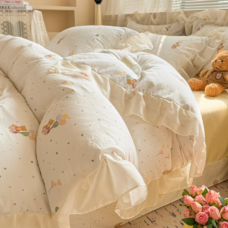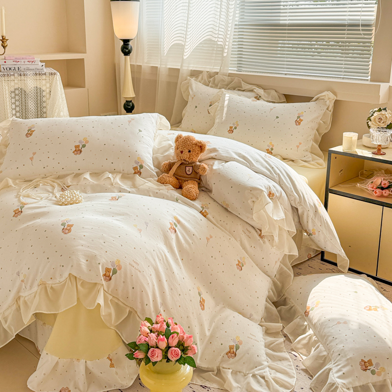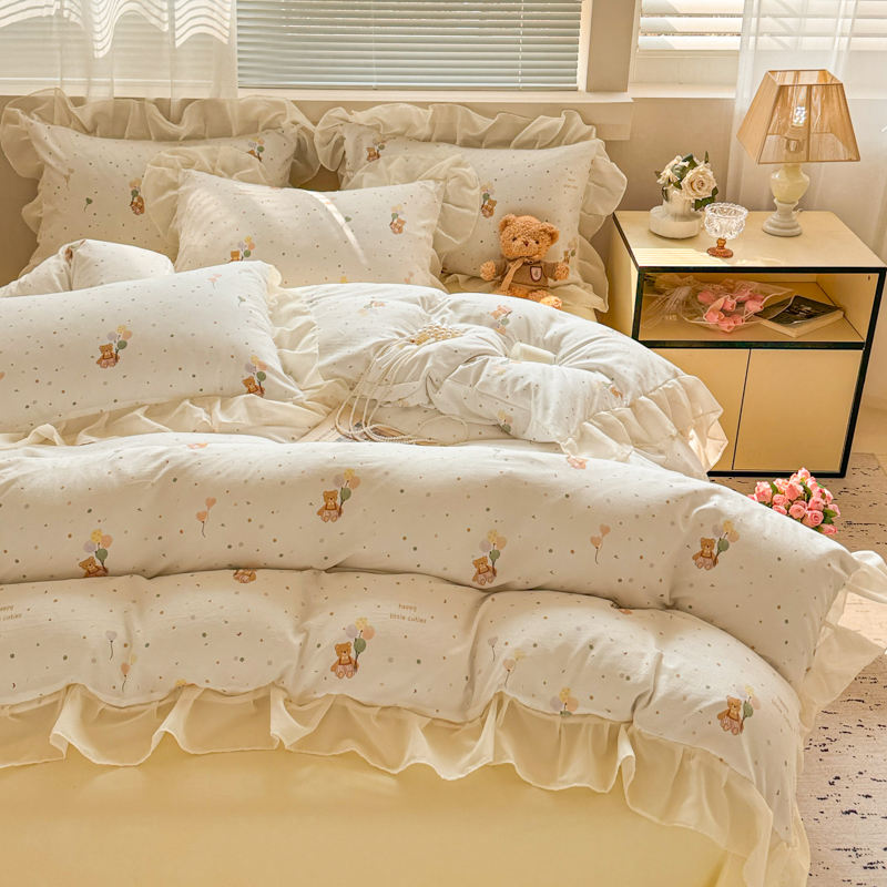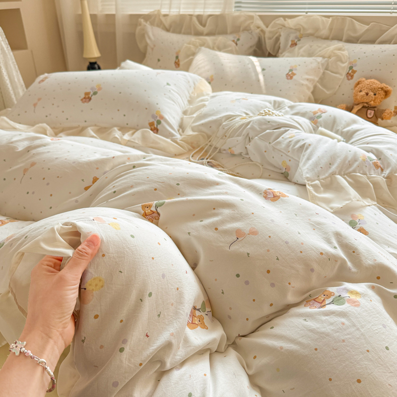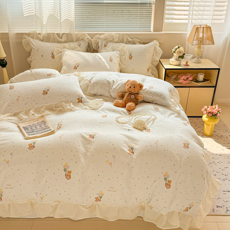 当前位置: 91家纺网 > 商品网购 > 床品套件 > 四件套 > 针织棉四件套 > 芯贝儿 2025新款提花针织水洗m双层纱床盖四件套 气球小熊