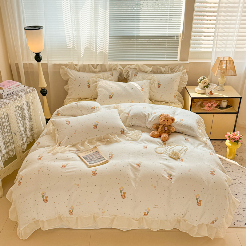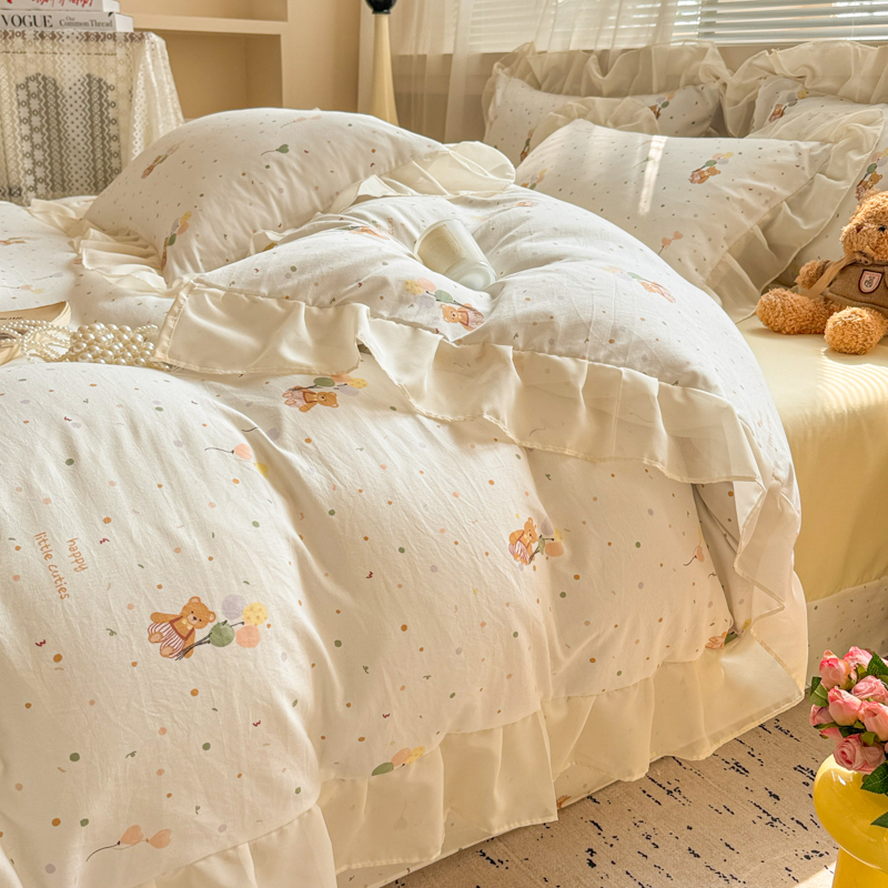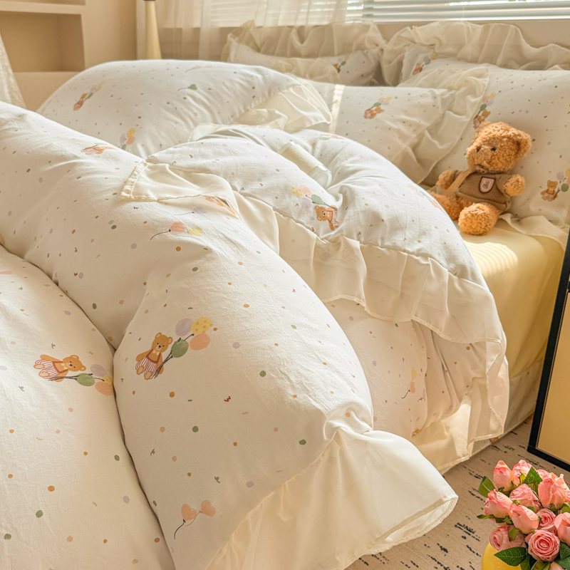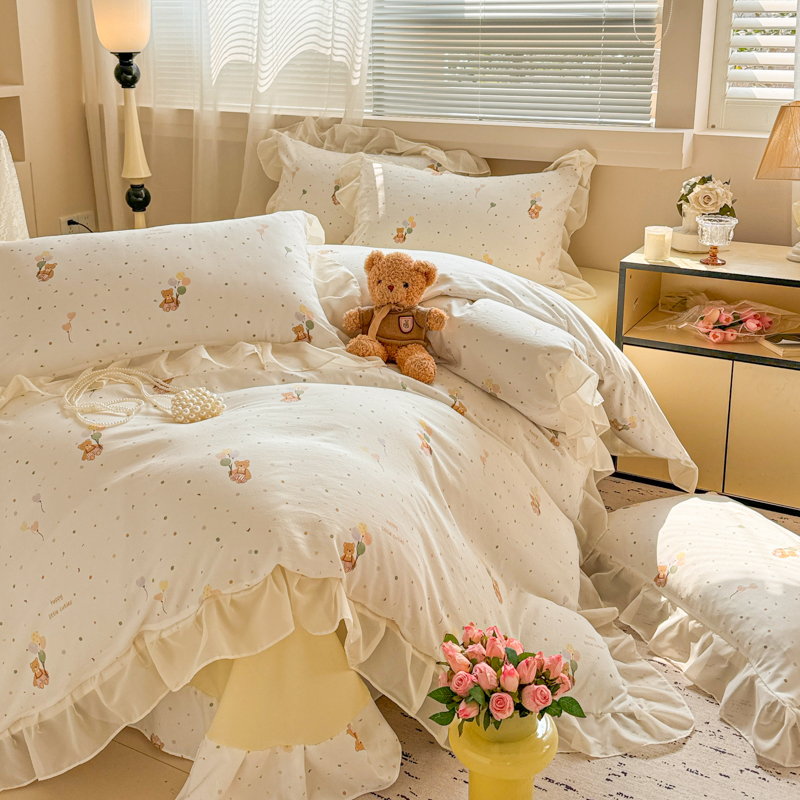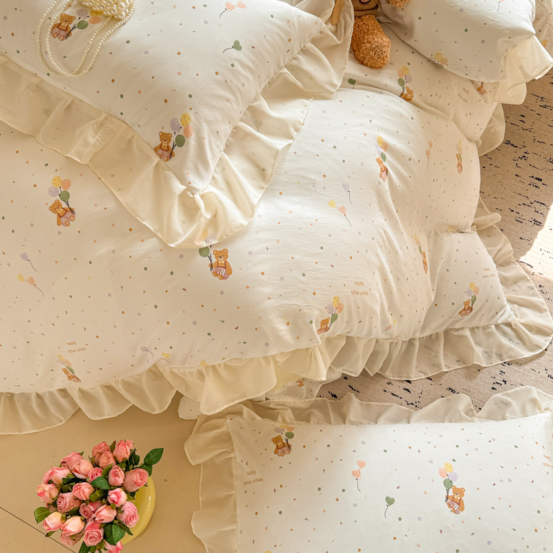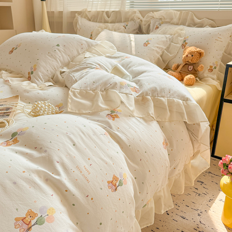 当前位置: 91家纺网 > 商品网购 > 床品套件 > 四件套 > 针织棉四件套 > 芯贝儿 2025新款提花针织水洗m双层纱床盖四件套 气球小熊
