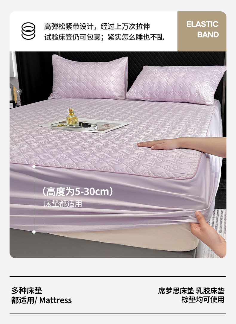 (总)2025A类母婴级长绒棉夹棉床笠三件套纯棉全棉加厚席梦思床罩床套四季款保护罩,茶绿,黛紫,慕蓝,奶玉,颜粉