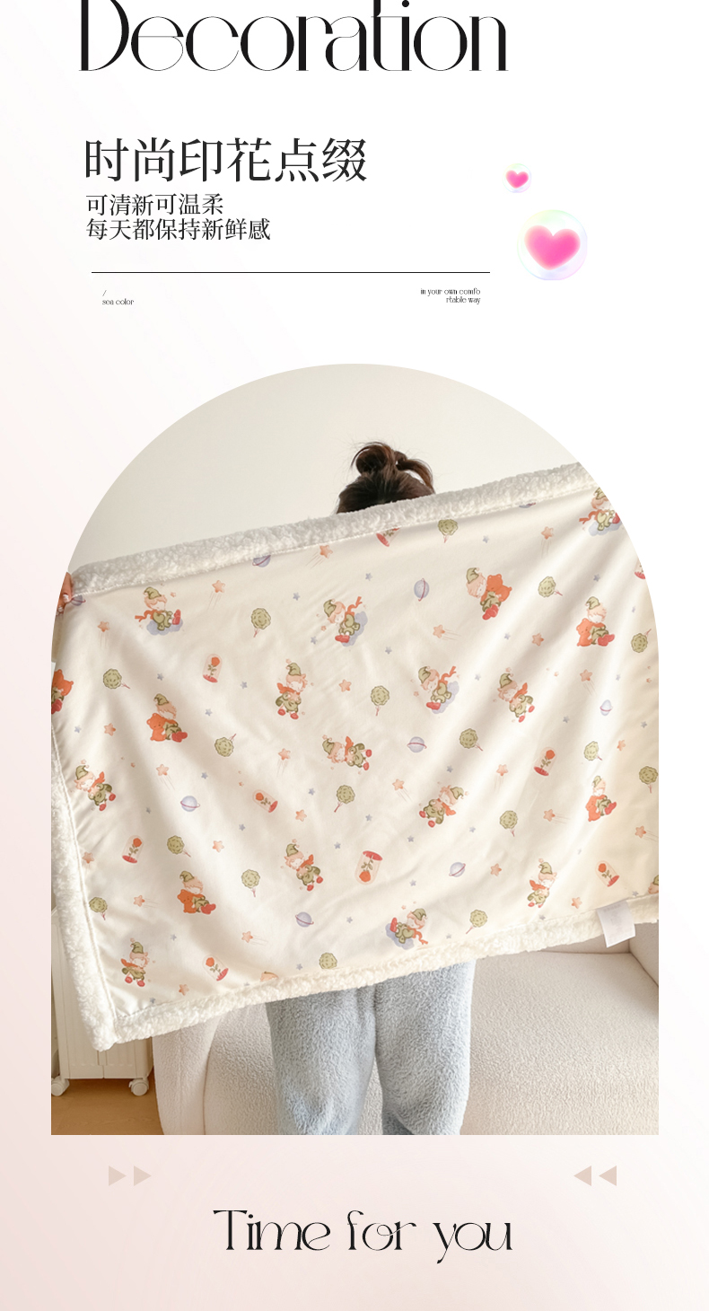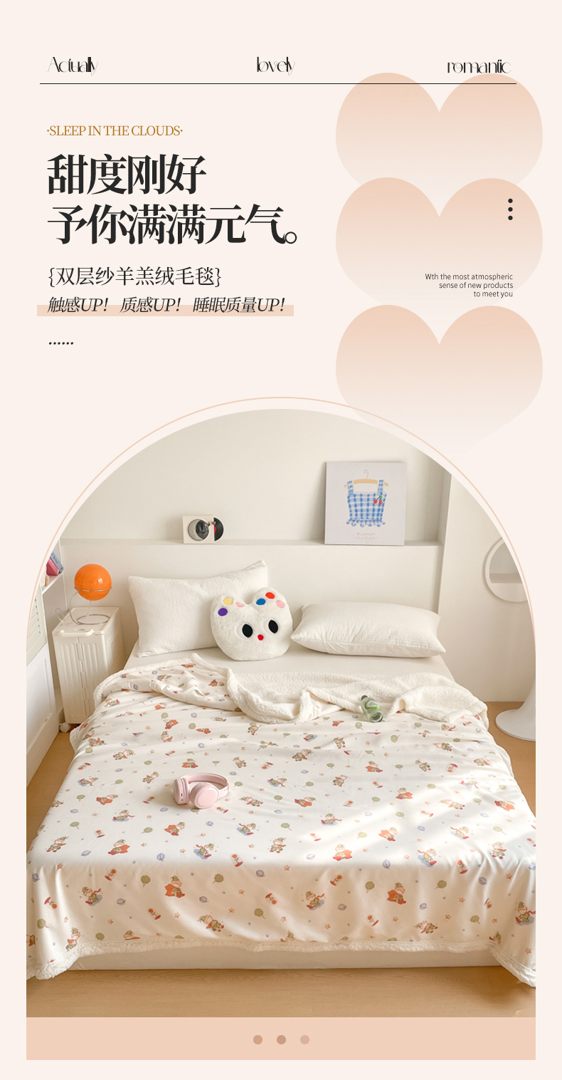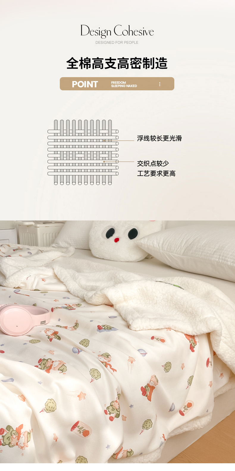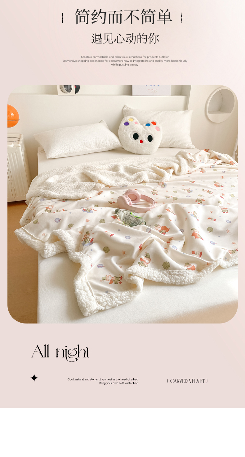 商品名称:857家居 2025新款双层针织纱羊羔绒毛毯 梦兔乐宴