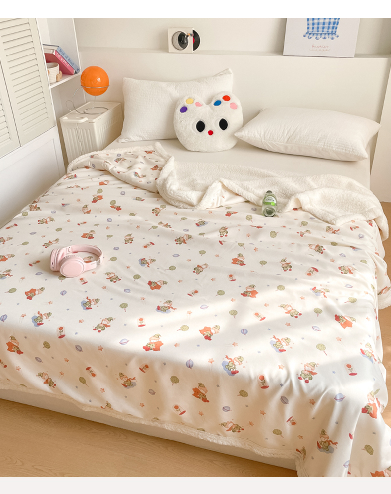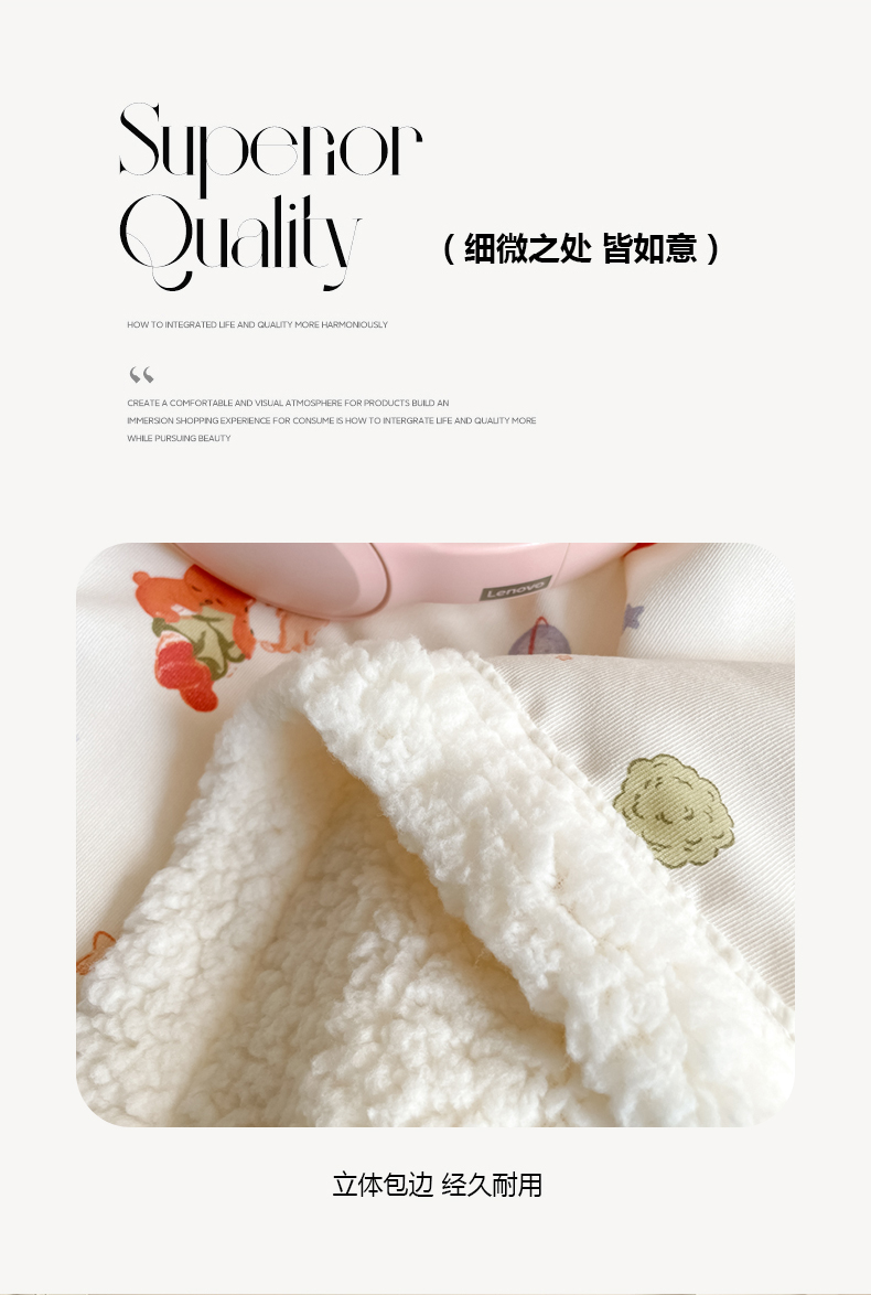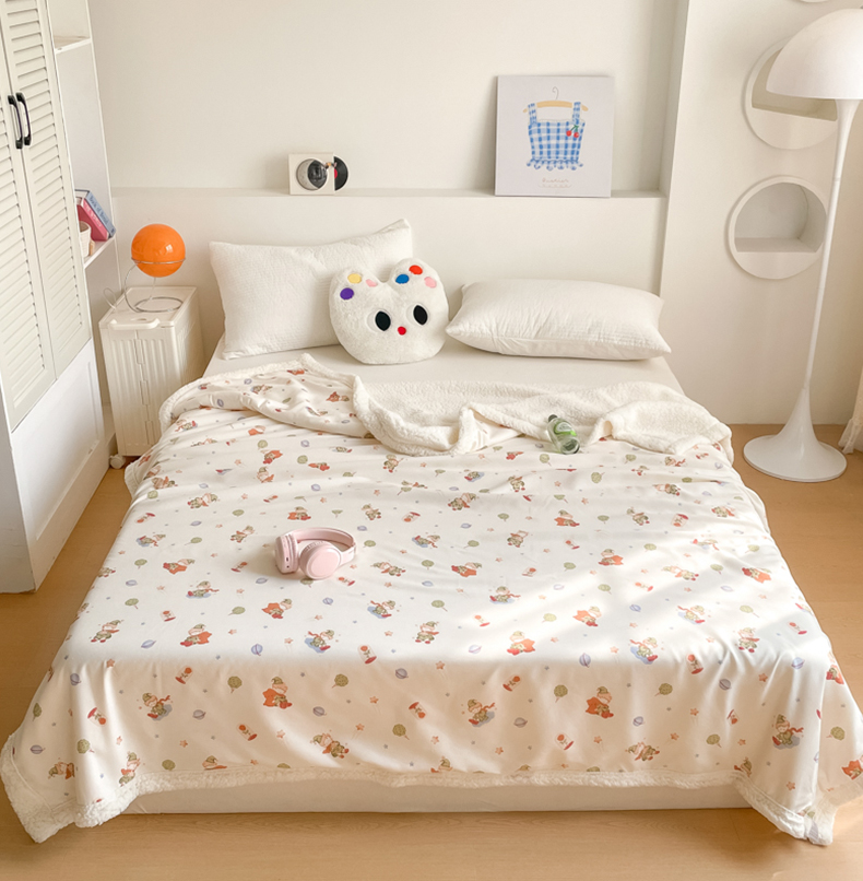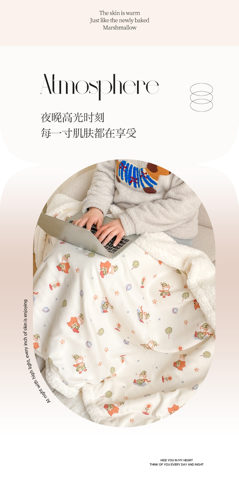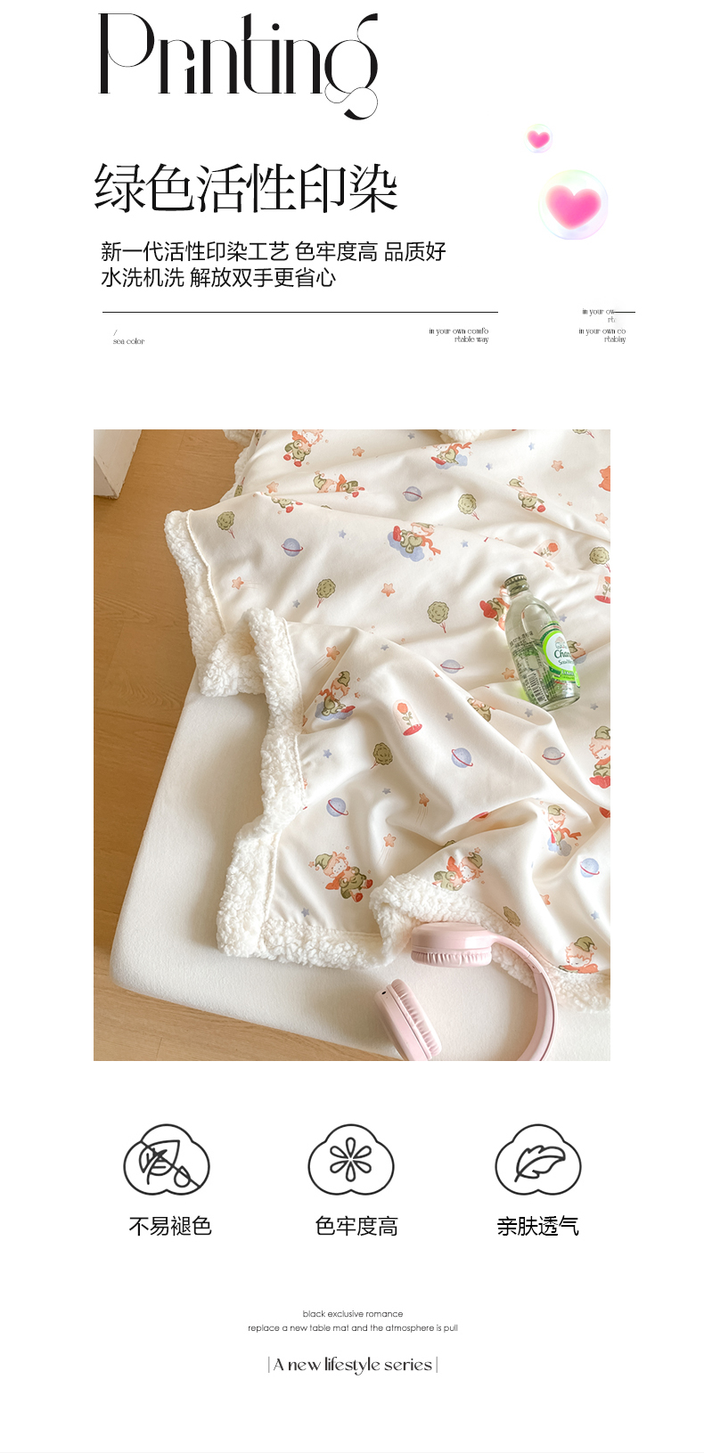 商品名称:857家居 2025新款双层针织纱羊羔绒毛毯 梦兔乐宴