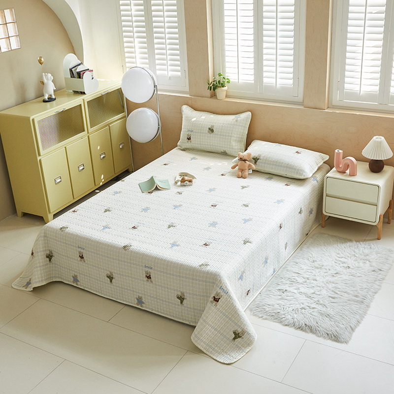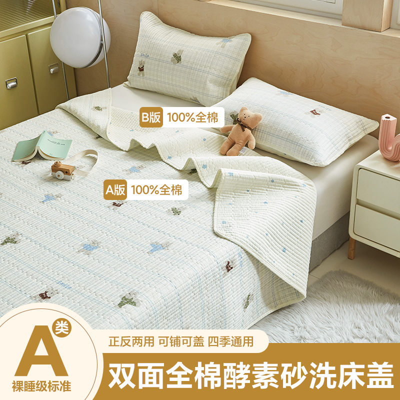 (总)舒居家纺 2025新款学生高温酵素砂洗双面全棉纯棉床盖,爱心木马,比利小熊,格子樱桃,花季少女,花开无声咖,花睿--青草绿,洛林--粉,迷彩花兔,俏皮狗,兔兔乐园,小汽车