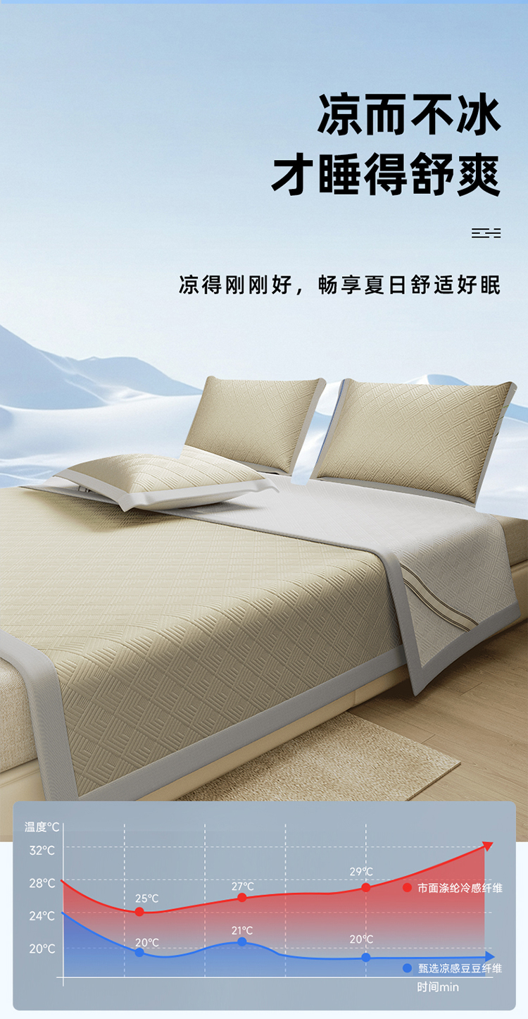 鑫姿席业 2025年春夏新款A类抗菌凉感豆豆凉席-软床席 软床席-浅黄