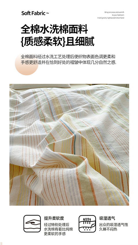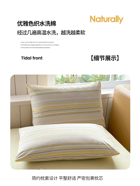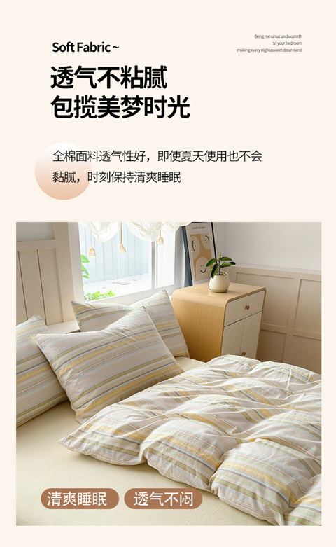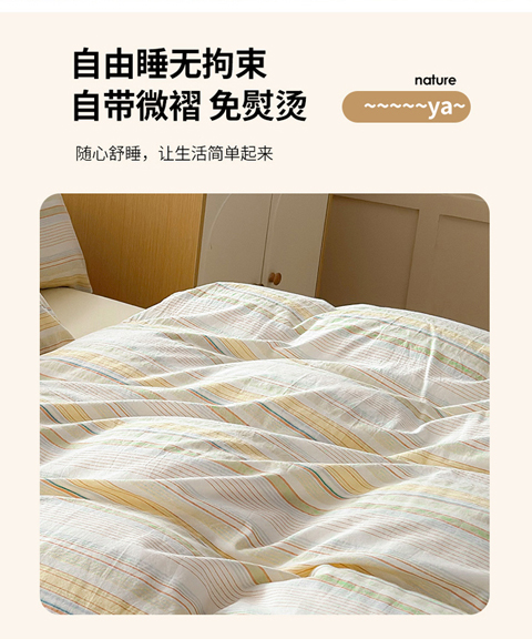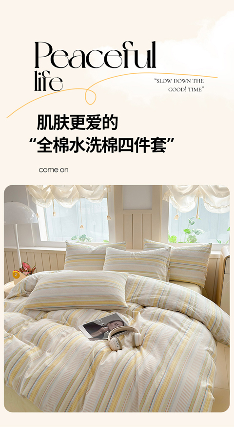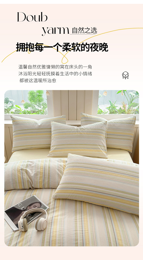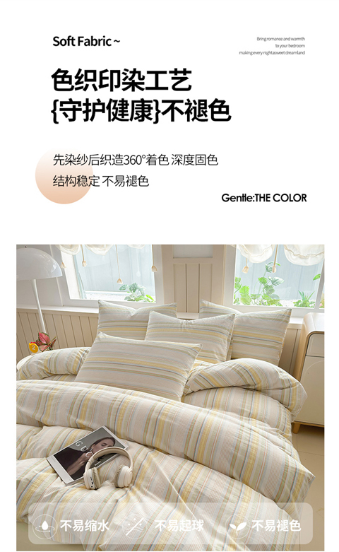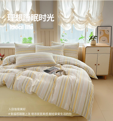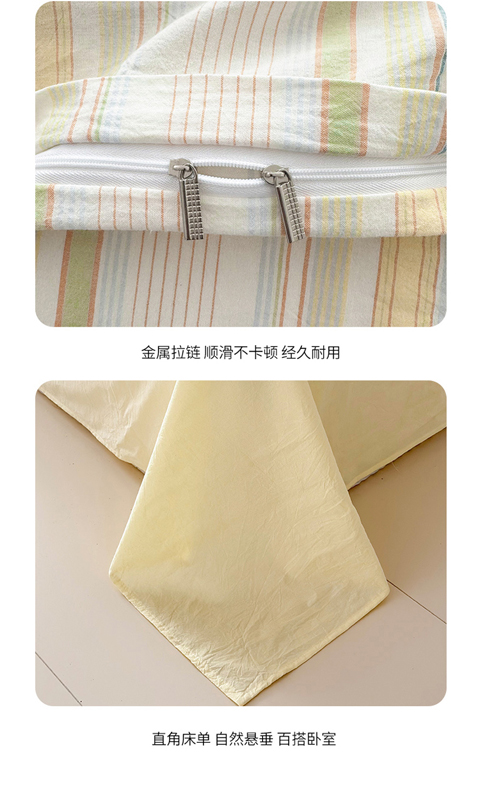 商品名称:梦精灵家纺 2025新款全棉色织水洗棉四件套纯棉床单被套罩学生宿舍三件套 西蒙-黄