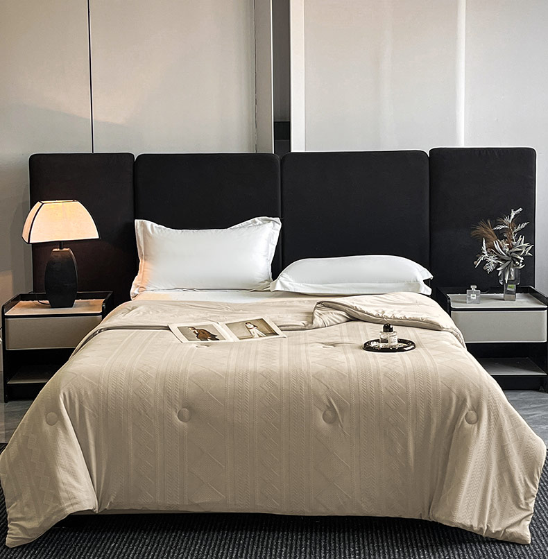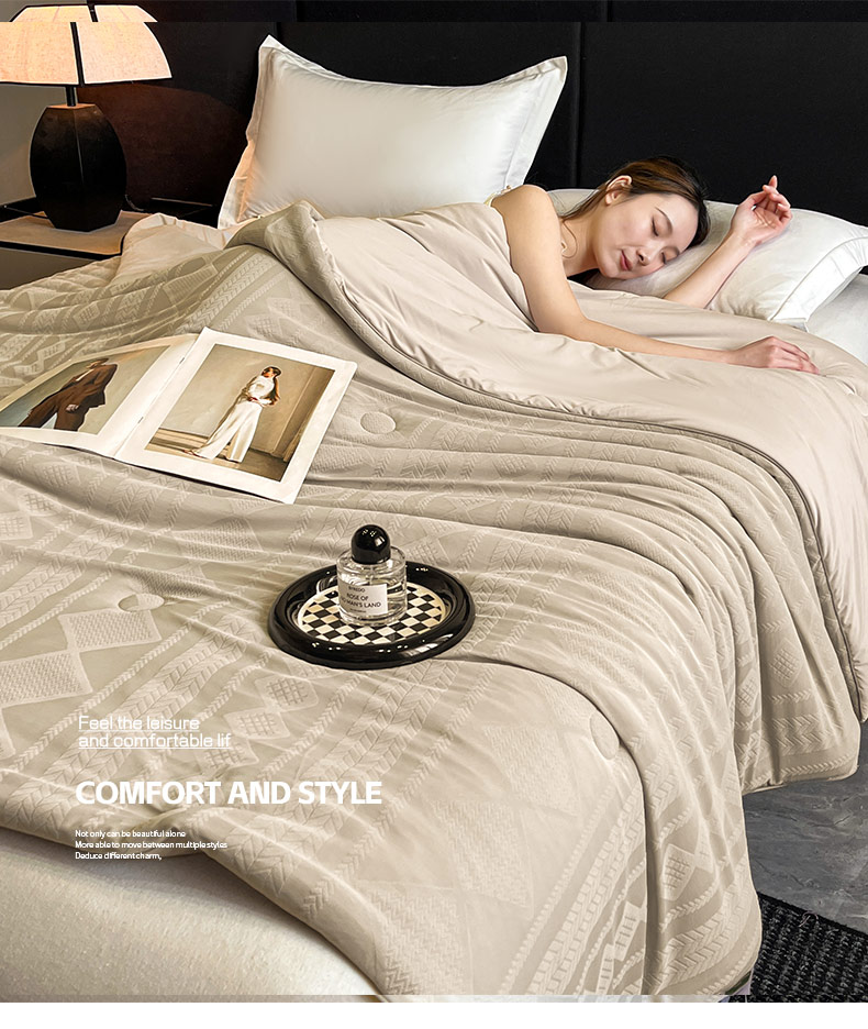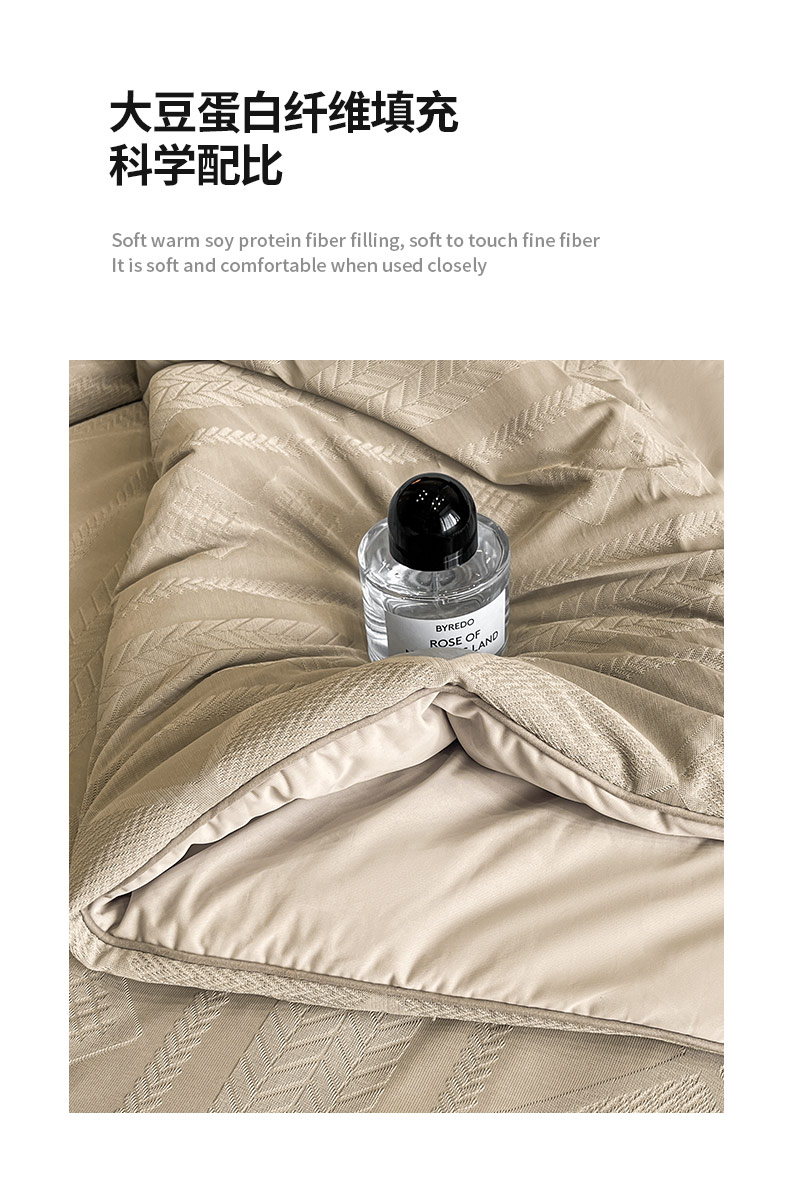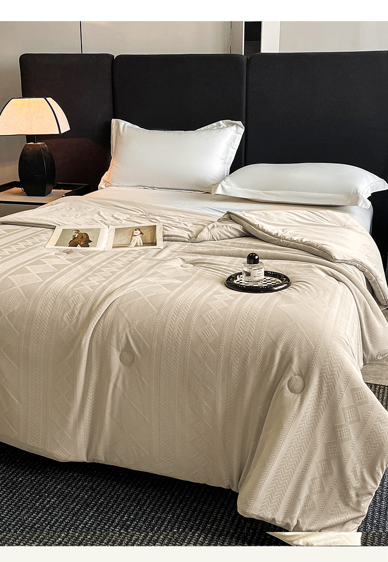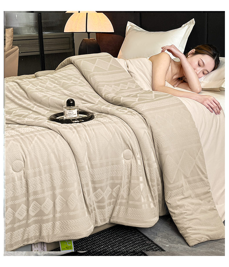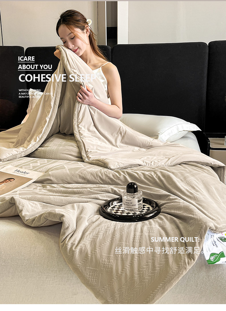 商品名称:子由家居 2025新款凉感丝浮雕提花大豆夏被被子被芯 菱形纹-香槟