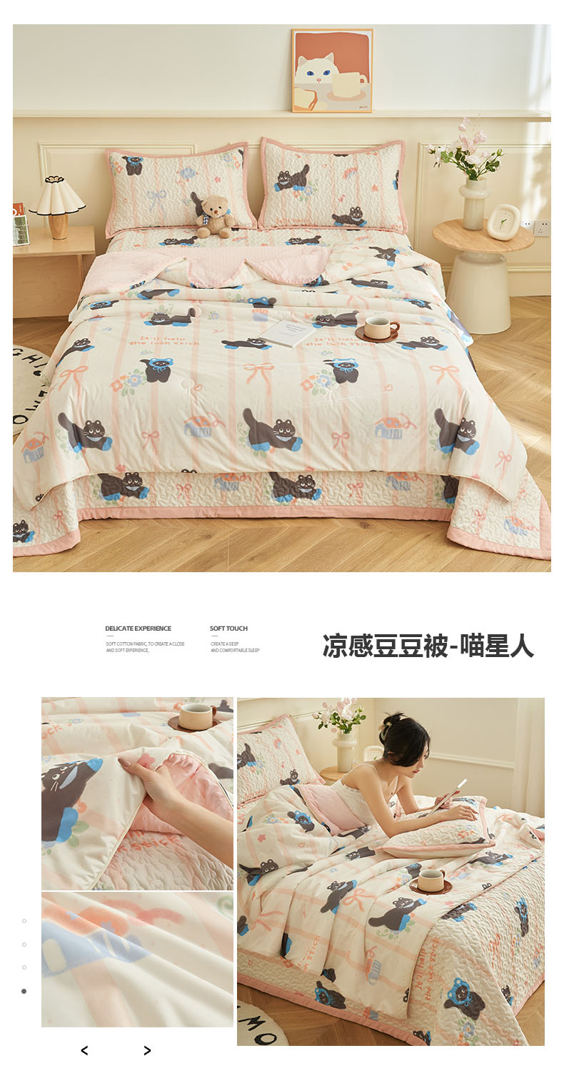 商品名称:子由家居 2025新款凉感丝豆豆夏被四件套 凉感豆豆被-可爱熊