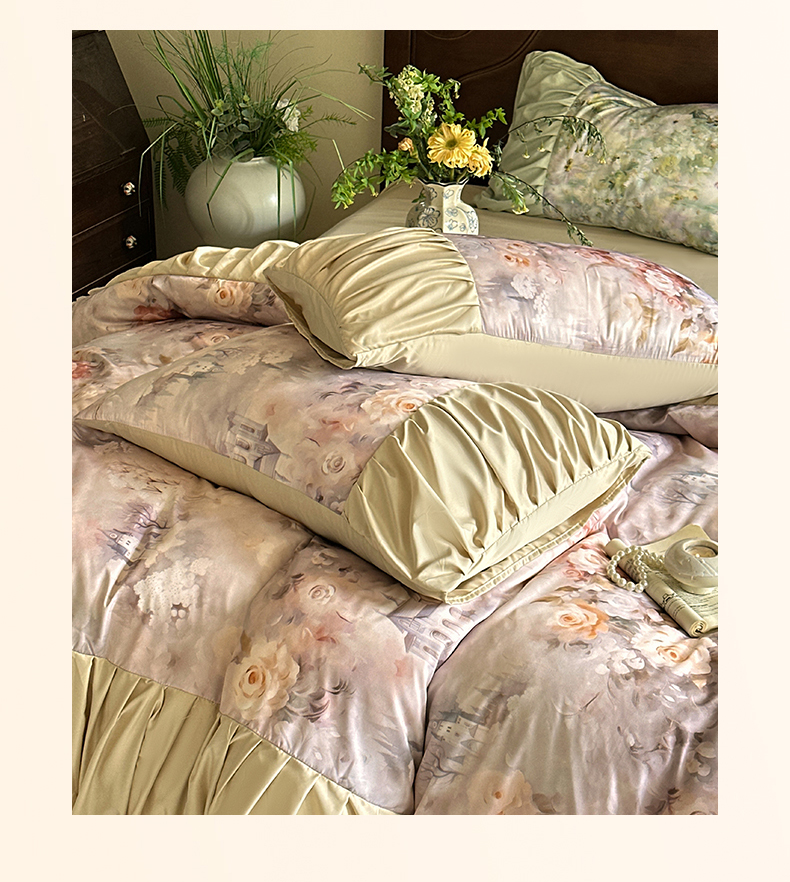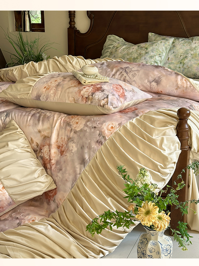 艾米家居 2025新款A类天丝棉冰丝法式花边褶皱款四件套 秘密花园皱褶款