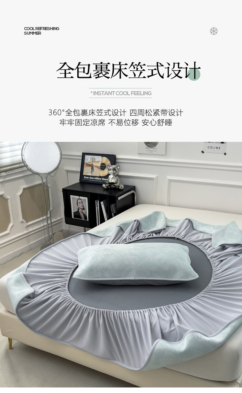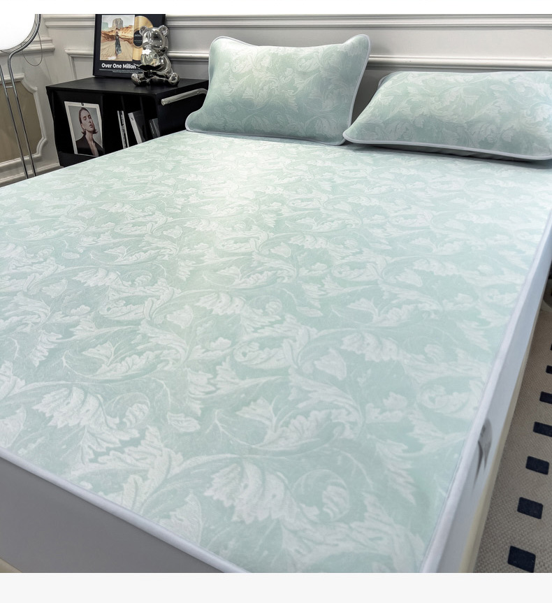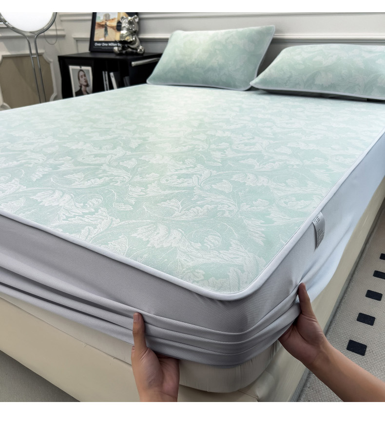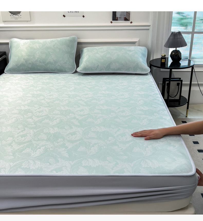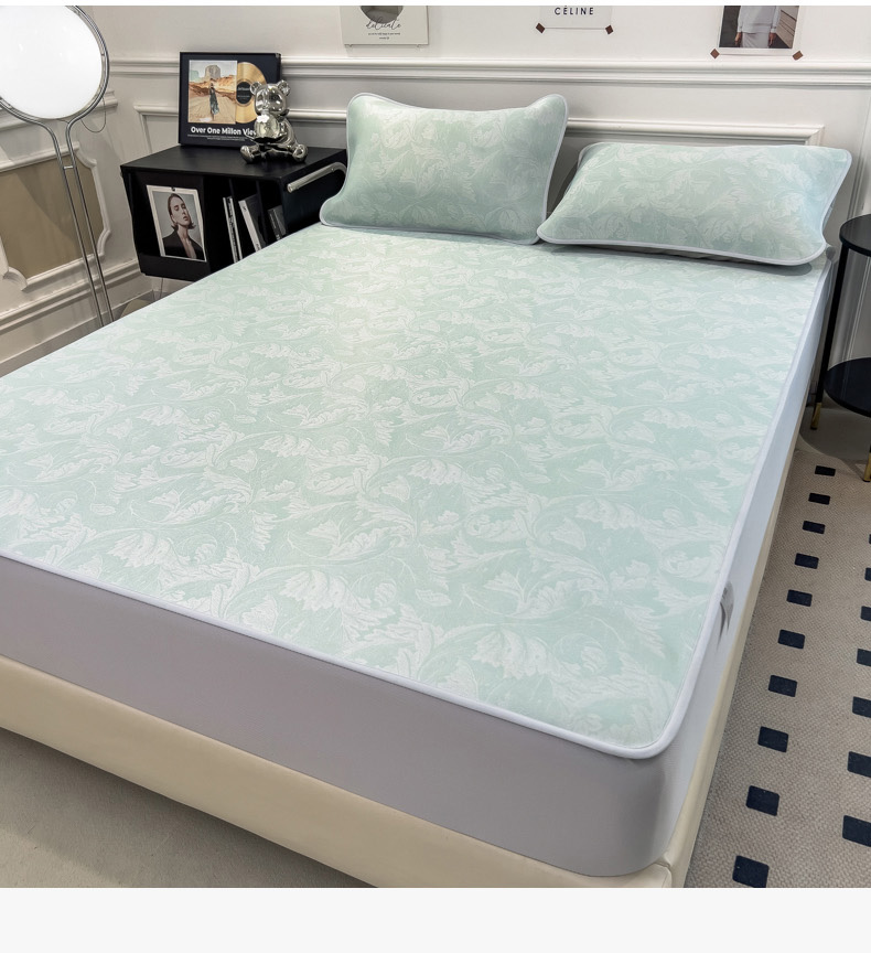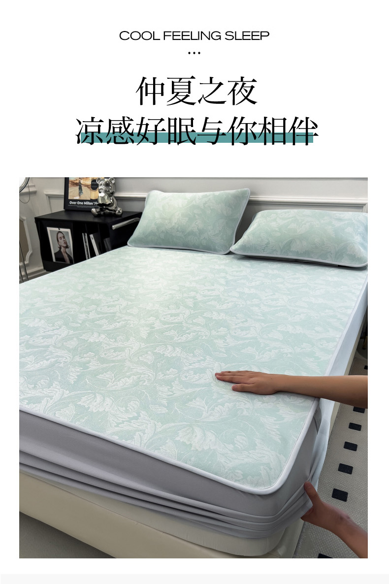 2025新款牛奶丝提花凉感凉席系列床笠款 叶之恋绿床笠款