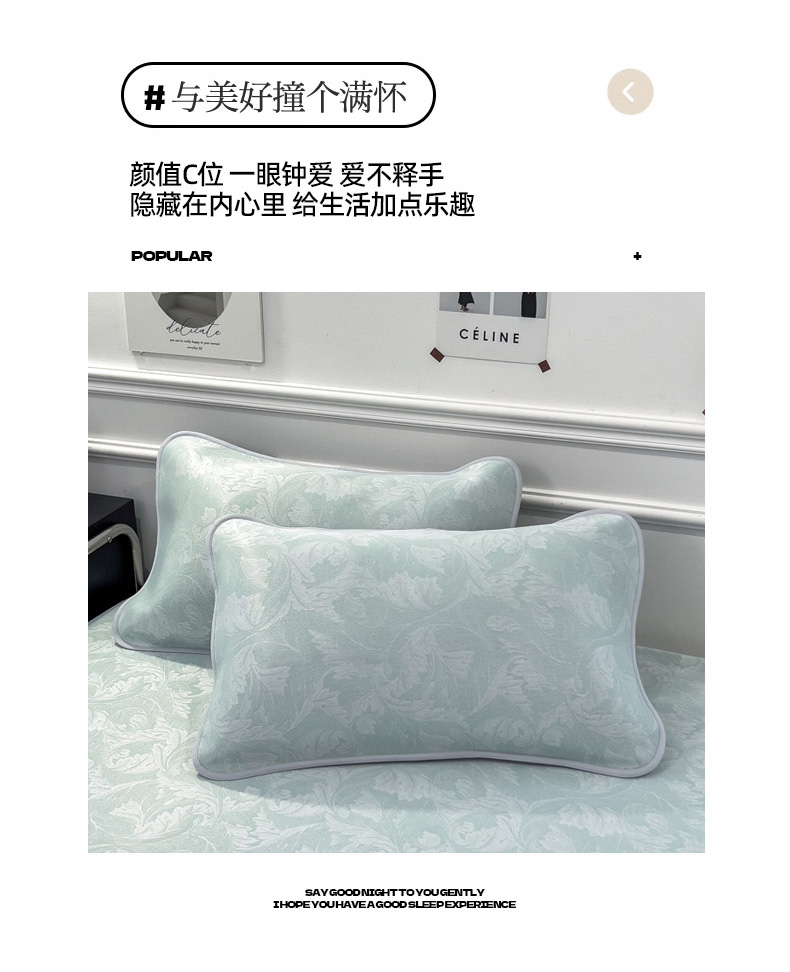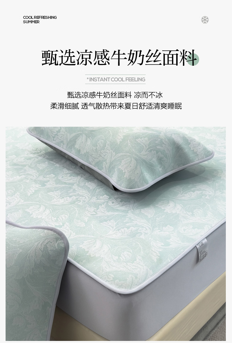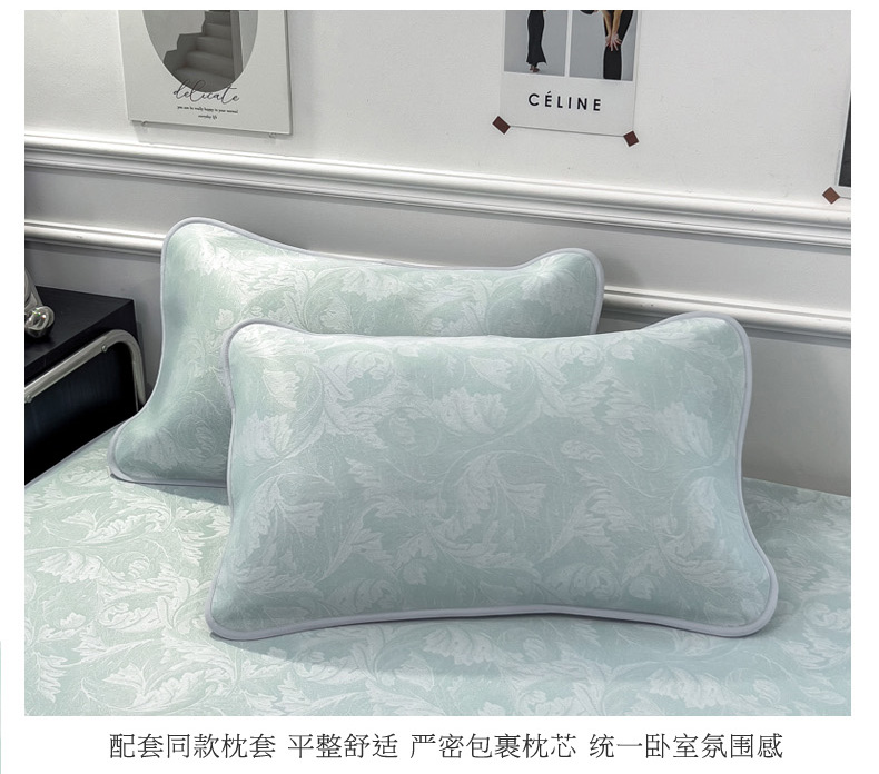 商品名称:2025新款牛奶丝提花凉感凉席系列床笠款 叶之恋绿床笠款