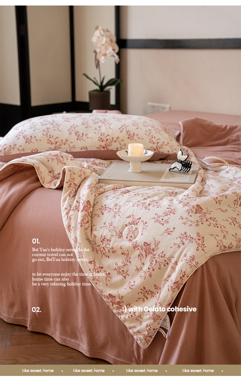 (总)华超针织 2025新款亲肤舒适全棉纯棉针织五件套四件套,奶糖+樱桃,杏粉+花田,杏灰+玫瑰