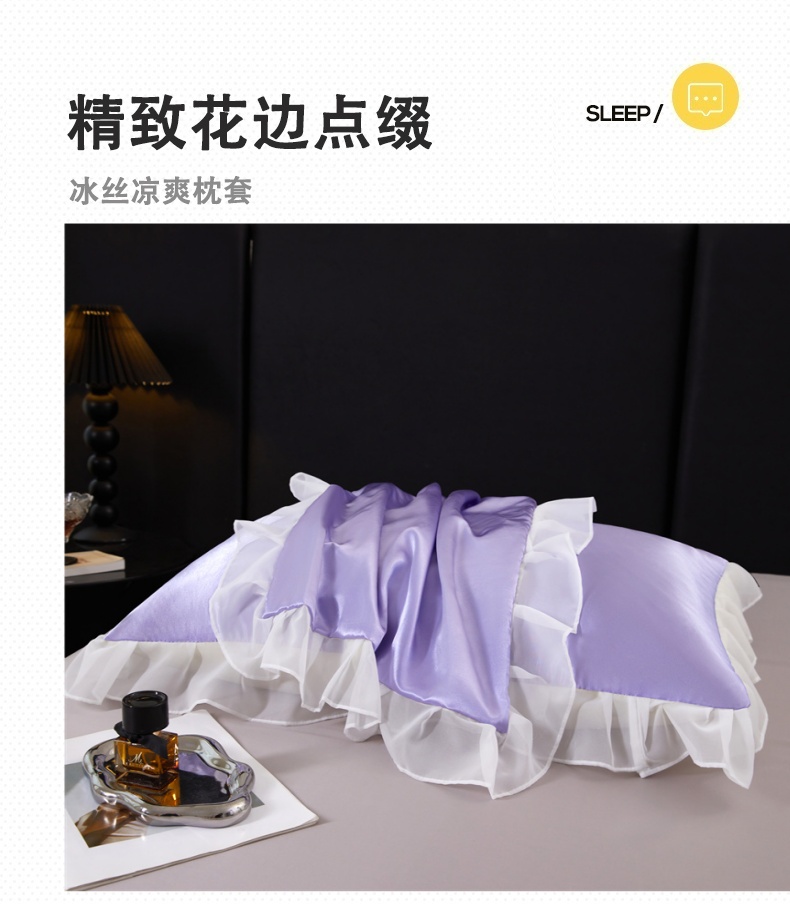 商品名称:圣比熊 2025新款公主风夏季冰丝枕套单人一对装可水洗花边枕头套宿舍48x74cm枕芯套枕头套 花边款-雪青色