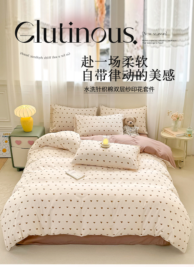 当前位置: 91家纺网 > 商品网购 > 床品套件 > 四件套 > 针织棉四件套 > 丝芙妮家居2025新款水洗针织棉双层纱印花四件套 甜心
