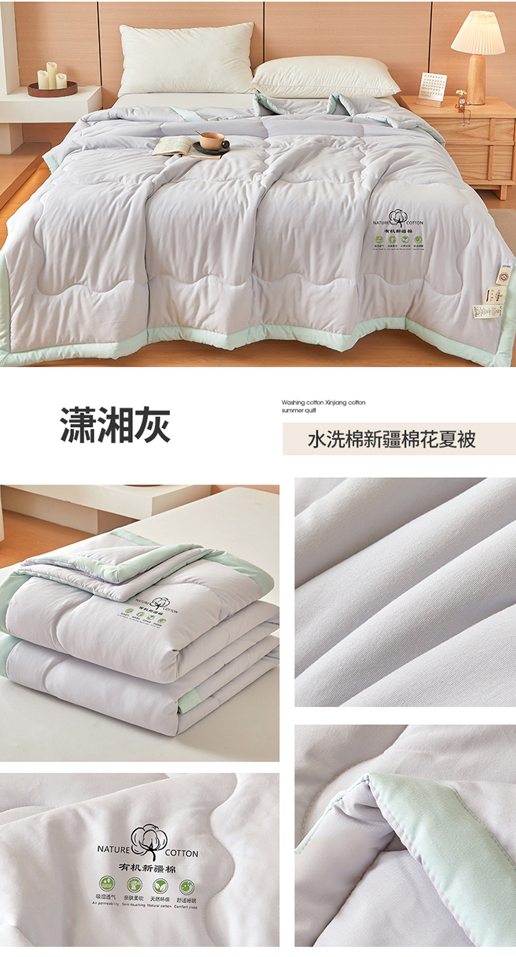 商品名称:易博家纺 2025新款格子纯色水洗棉无印风百分百新疆棉花夏被夏凉被被子被芯 潇湘灰