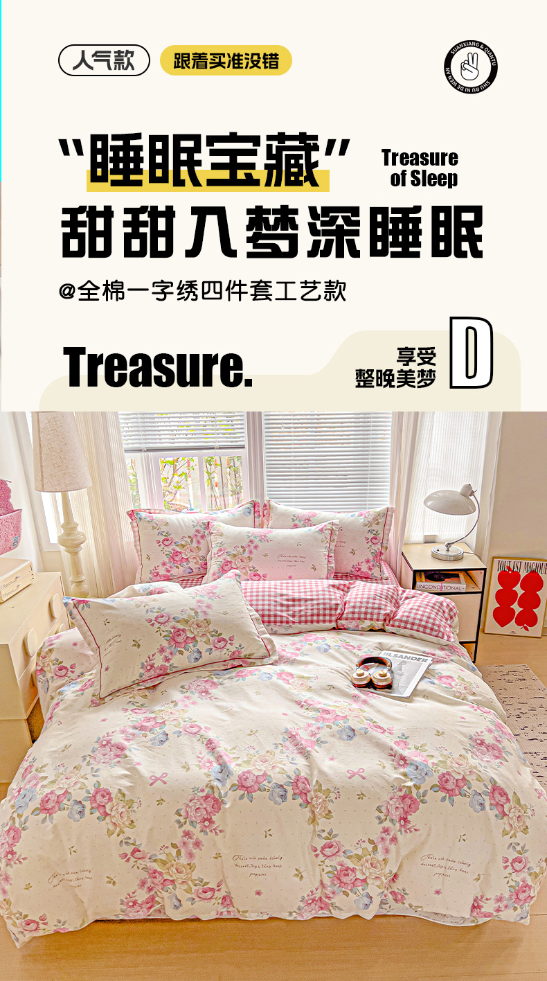 商品名称:优选良品 2025新款全棉纯棉一字绣四件套系列 花梦初