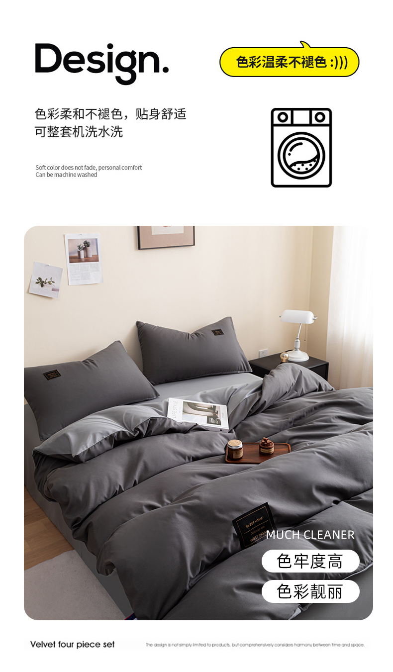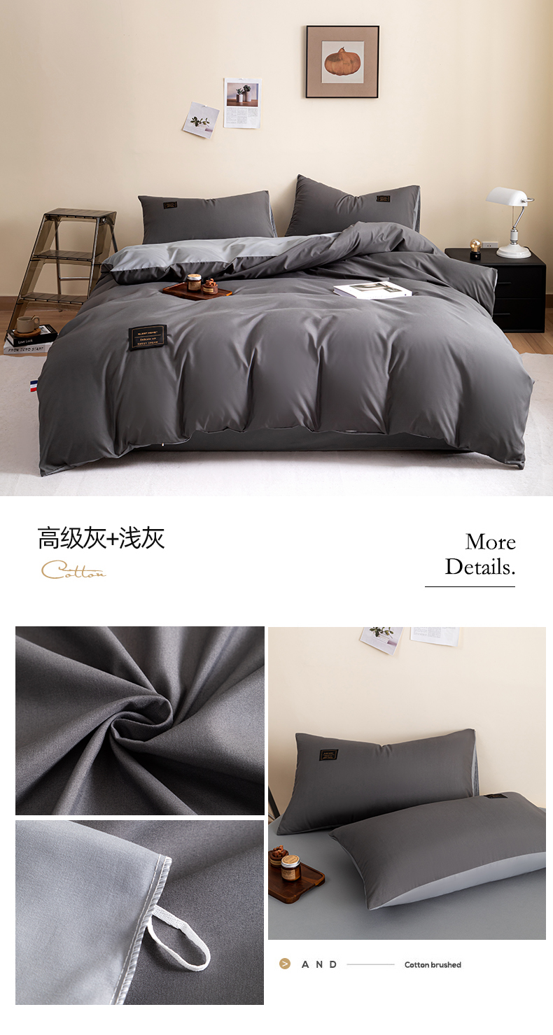 商品名称:恋之语 2025新款90克纯色双拼单被套 高级灰+浅灰