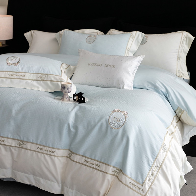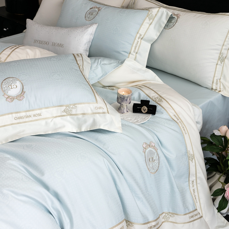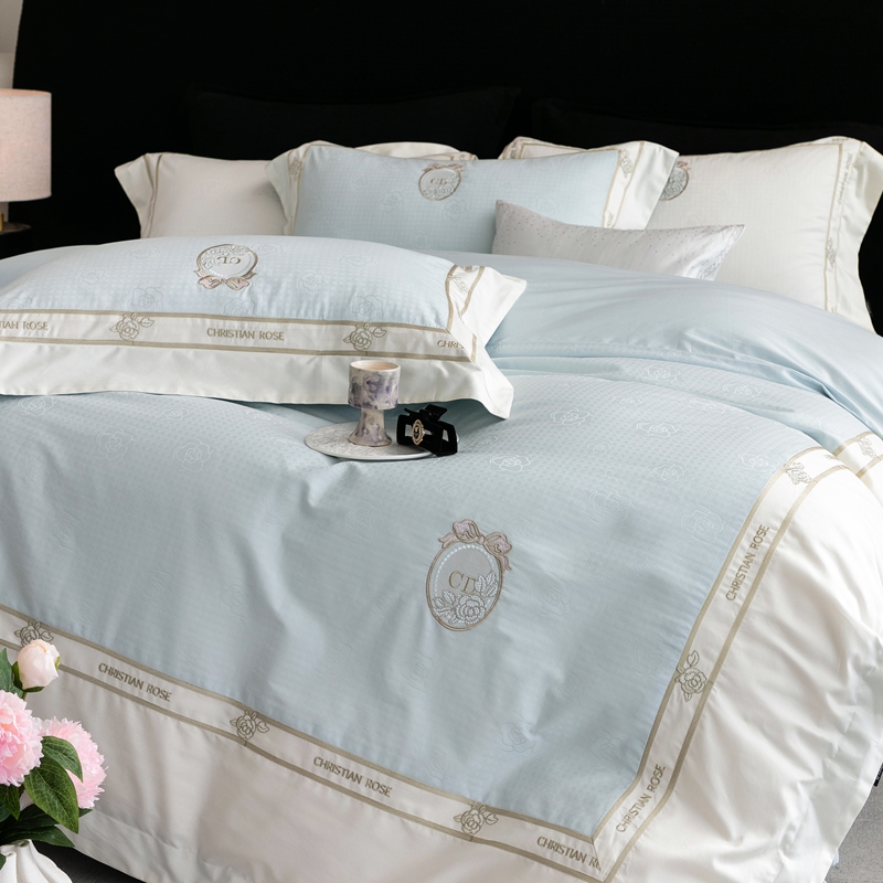 商品名称: 馨蕊家居 2025春夏新品高定典藏提花系列刺绣四件套--露丝 露丝-北卡蓝