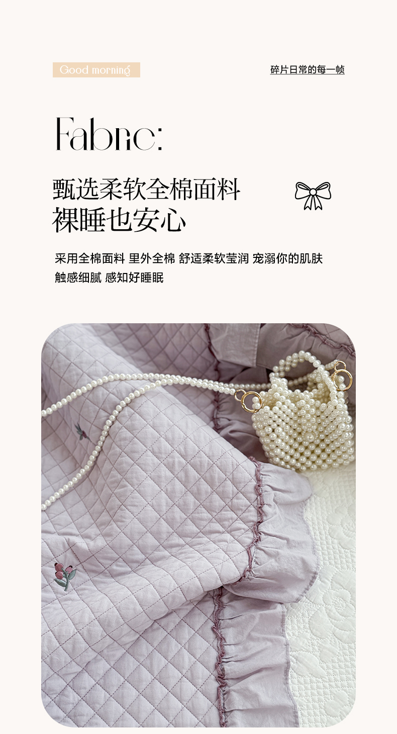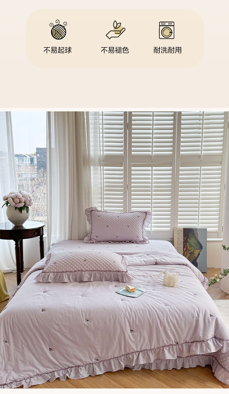 当前位置: 91家纺网 > 商品网购 > 床品套件 > 四件套 > 全棉普通四件套 > 诗黛尔 2025新款全棉蝴蝶结床盖三件套 酱果花-魅力紫